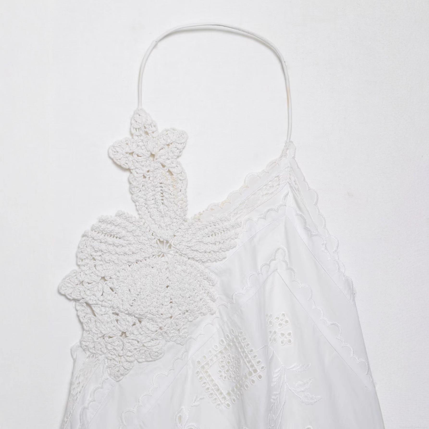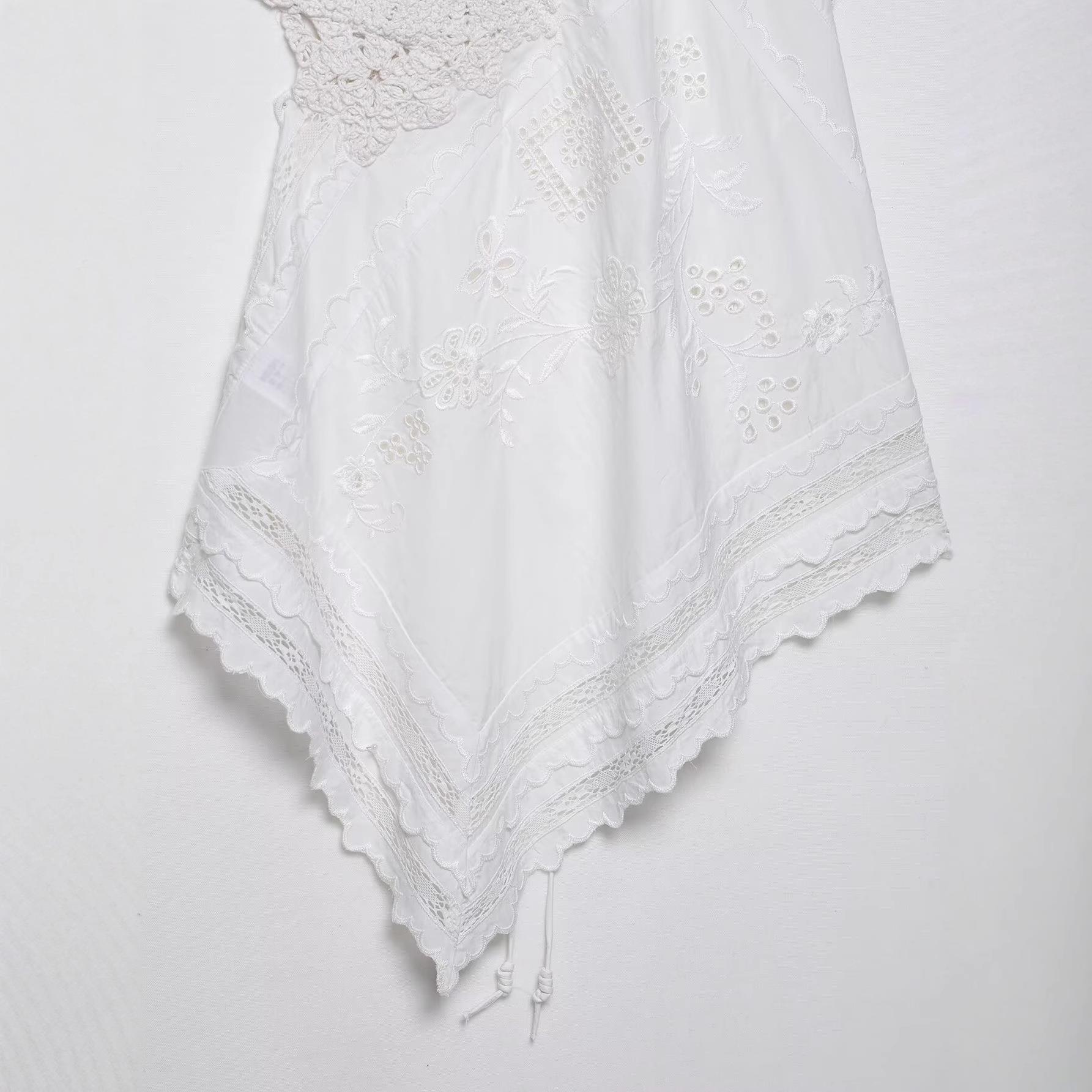 • Women's Sexy White Halter Crochet Top With Floral Embroidery Asymmetric Hem Boho Lace Cami For Summer Beach Party Vacation Streetwear