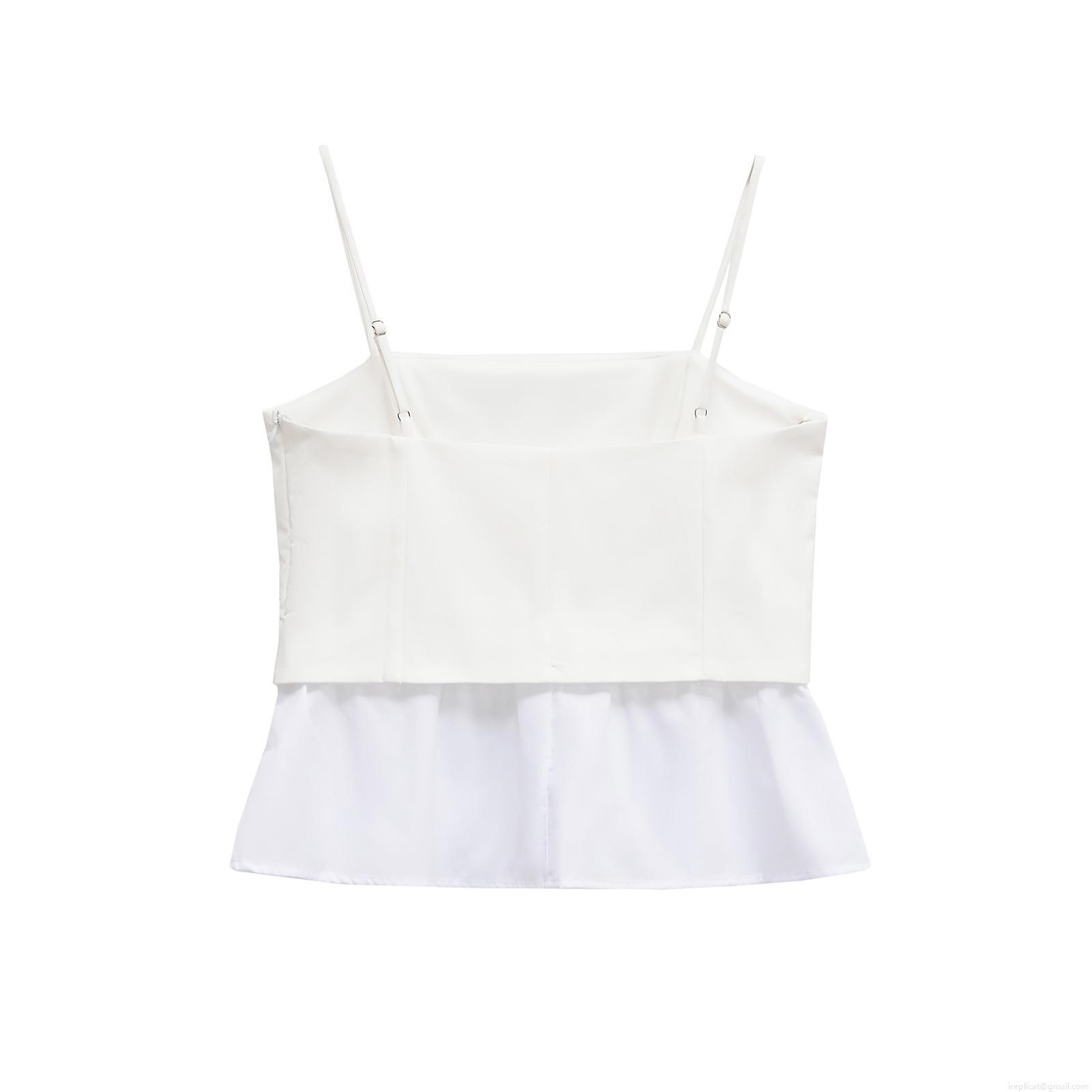 • Women's Sexy White Peplum Cami Top Adjustable Spaghetti Straps Ruffle Hem Button Detail Tank Top Summer Streetwear Party Blouse