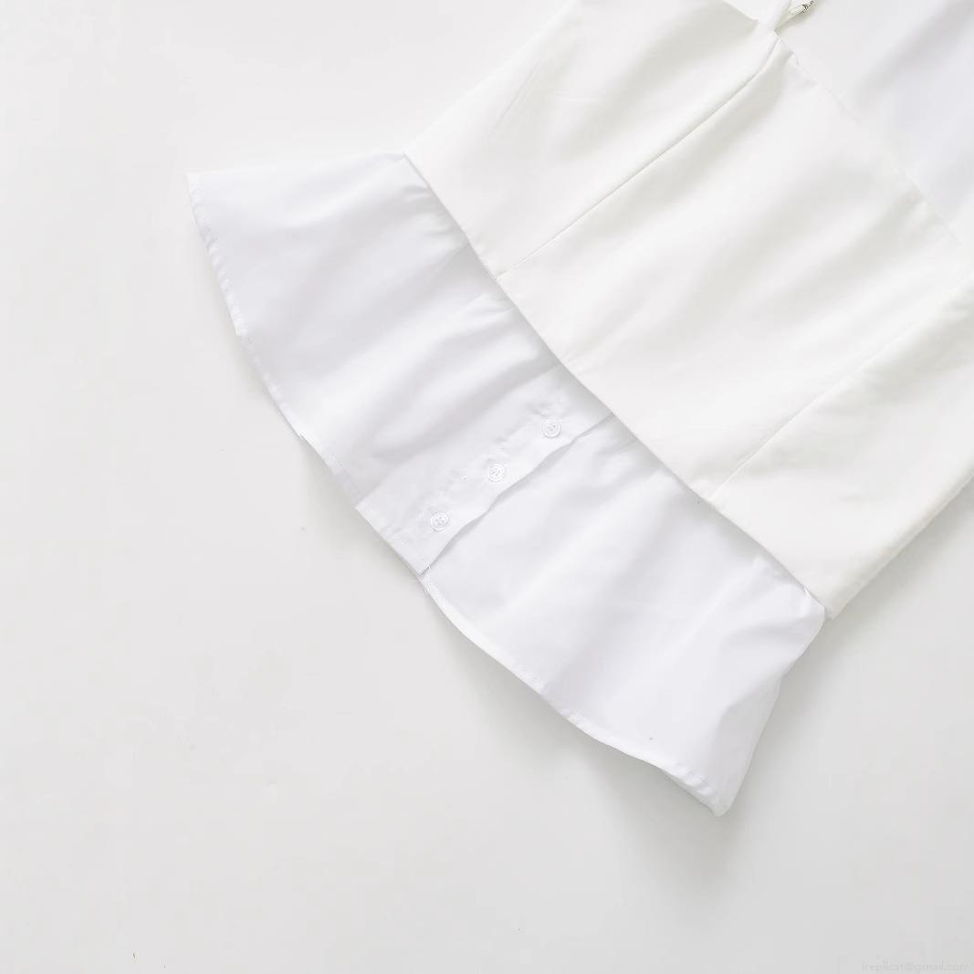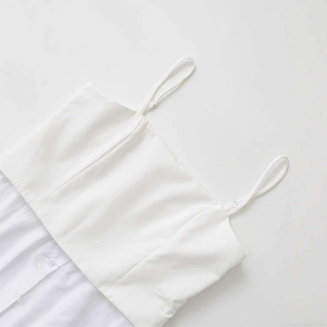 Solid Color, Splice, Ruffles, Button Decoration, Thin Shoulder Straps