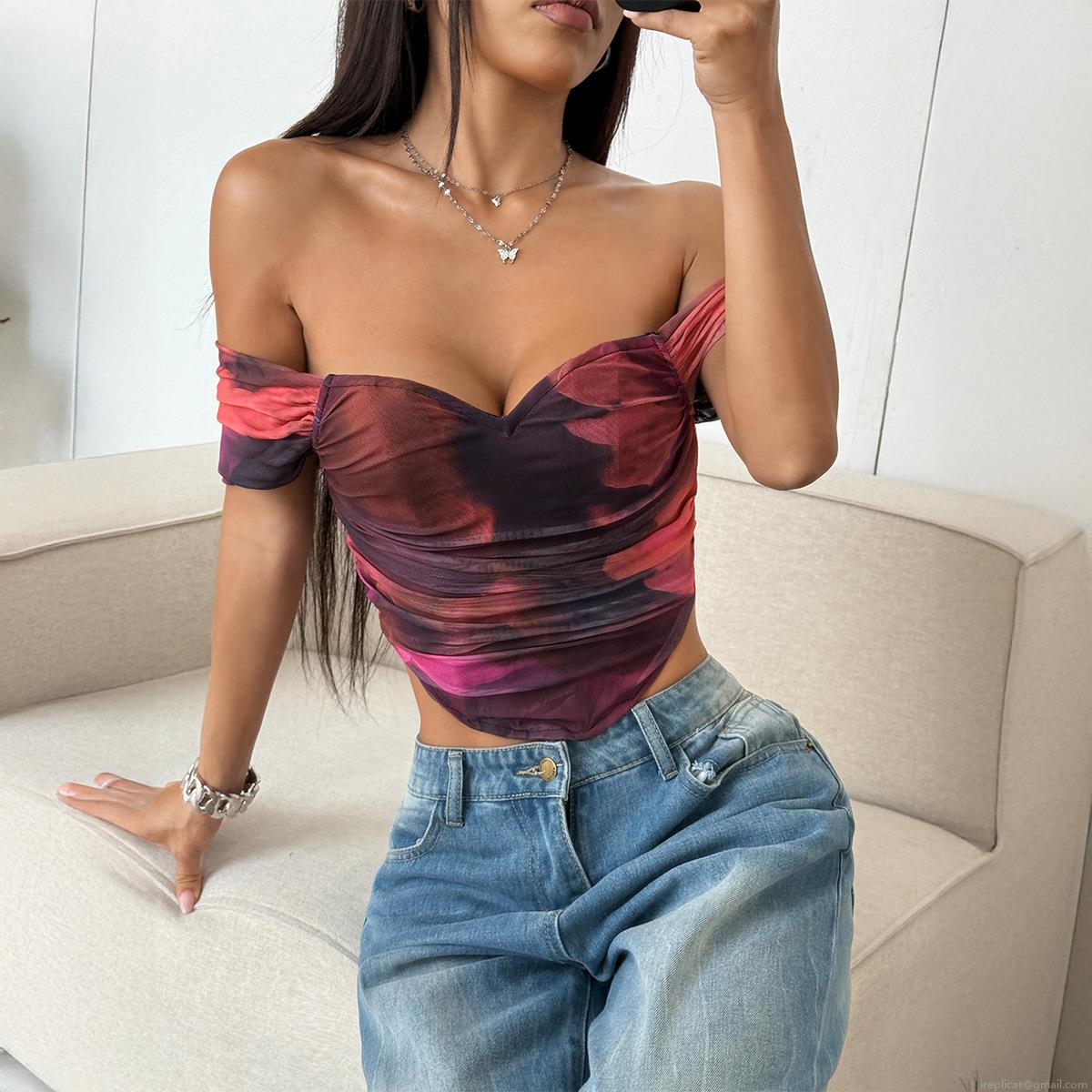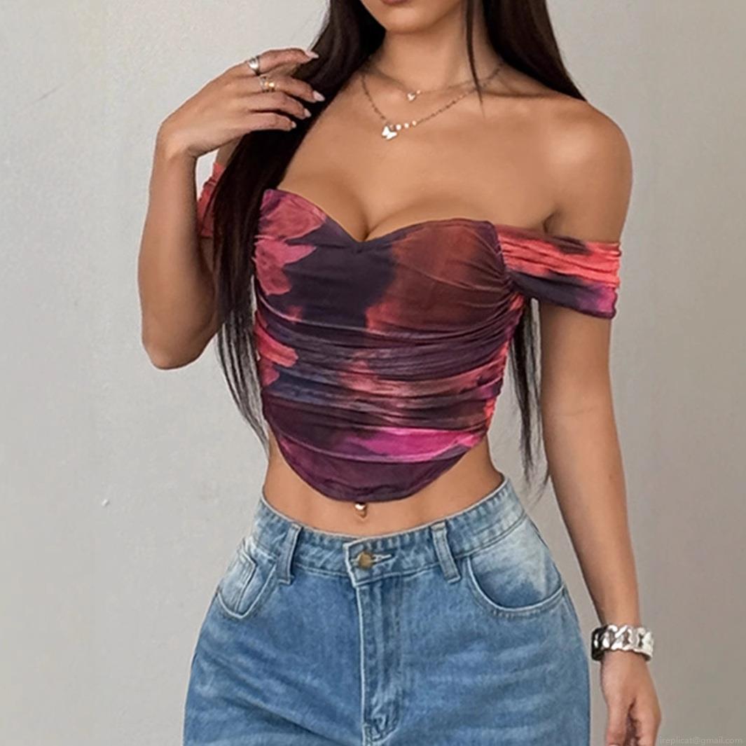 • Women's Sexy Y2K Tie Dye Strapless Tube Top Polyester Elastane Ruched Mesh Off Shoulder Slim Fit Crop Top For Summer Party Clubwear Streetwear