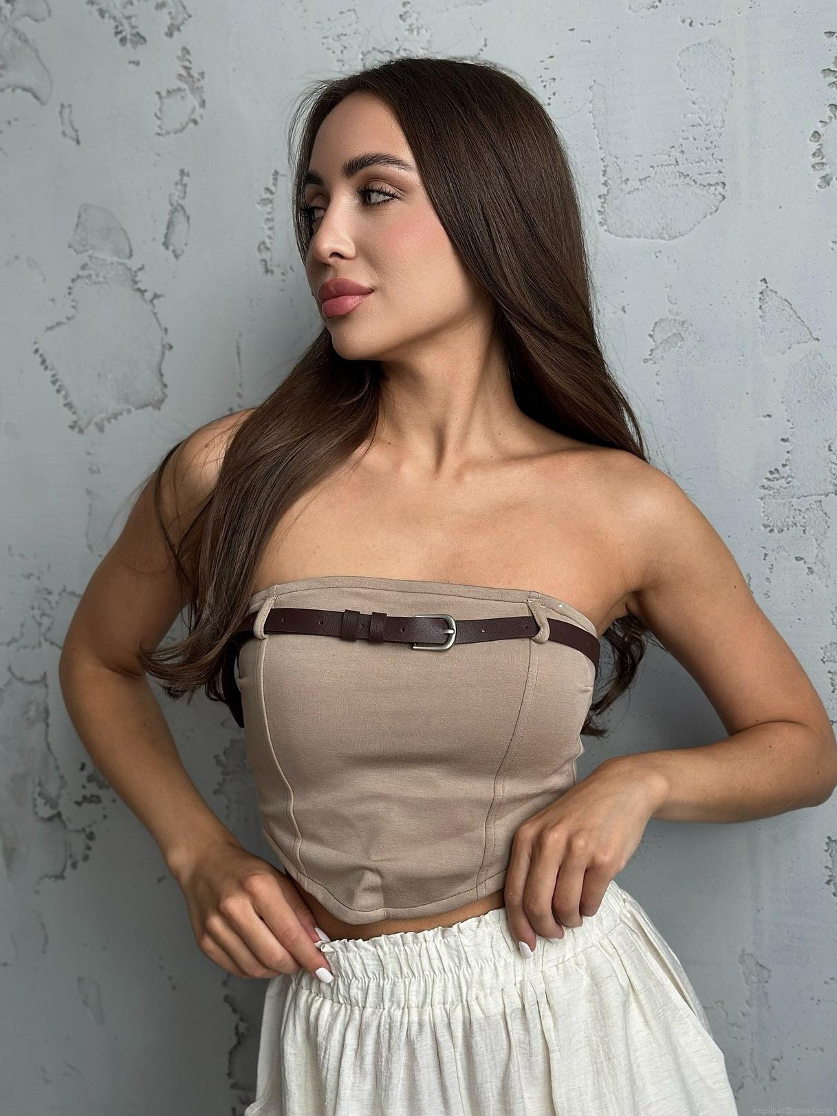 • Women's Sexy Y2K Tube Top With Faux Leather Belt Slim Fit Cotton Blend Cropped Cami For Party Clubwear Streetwear