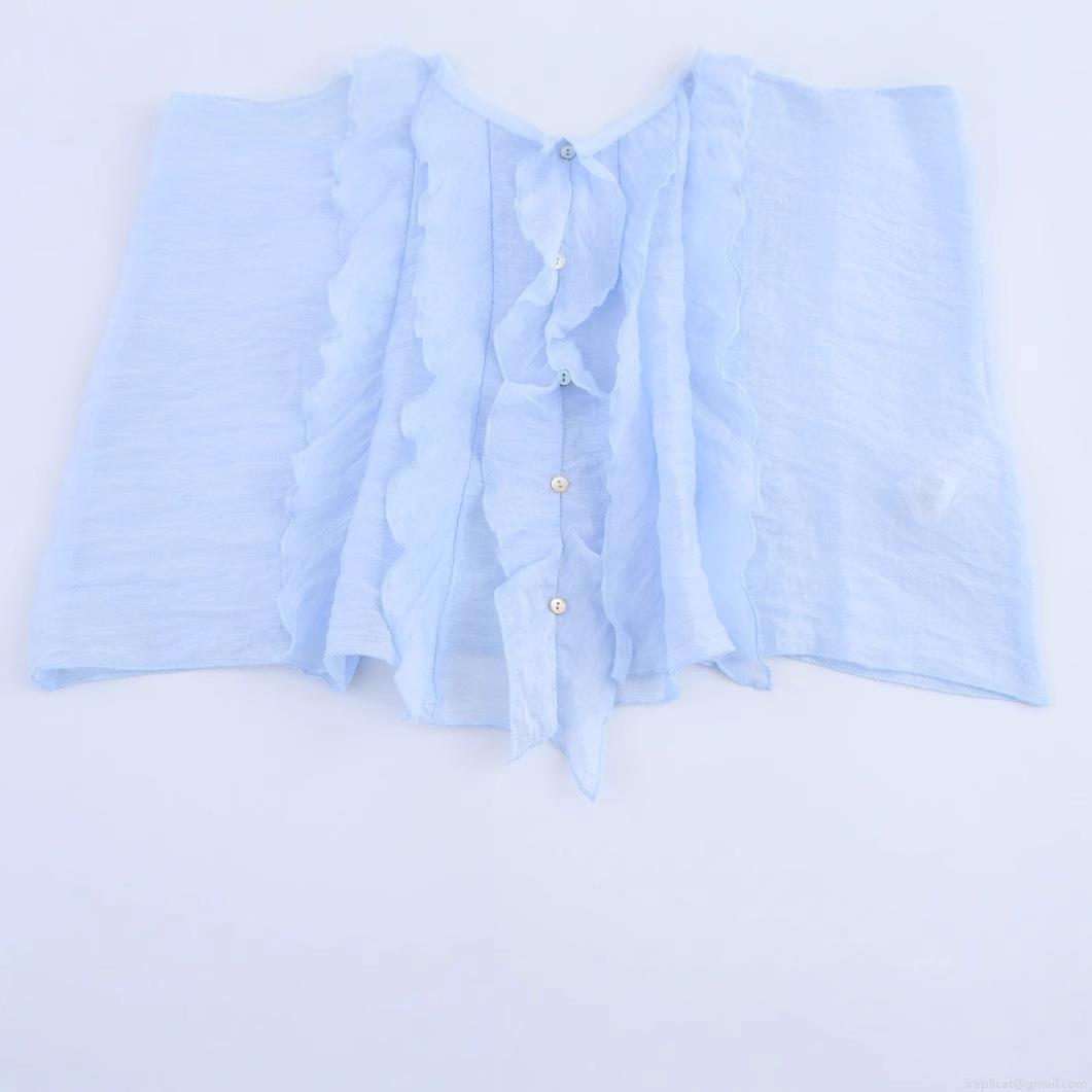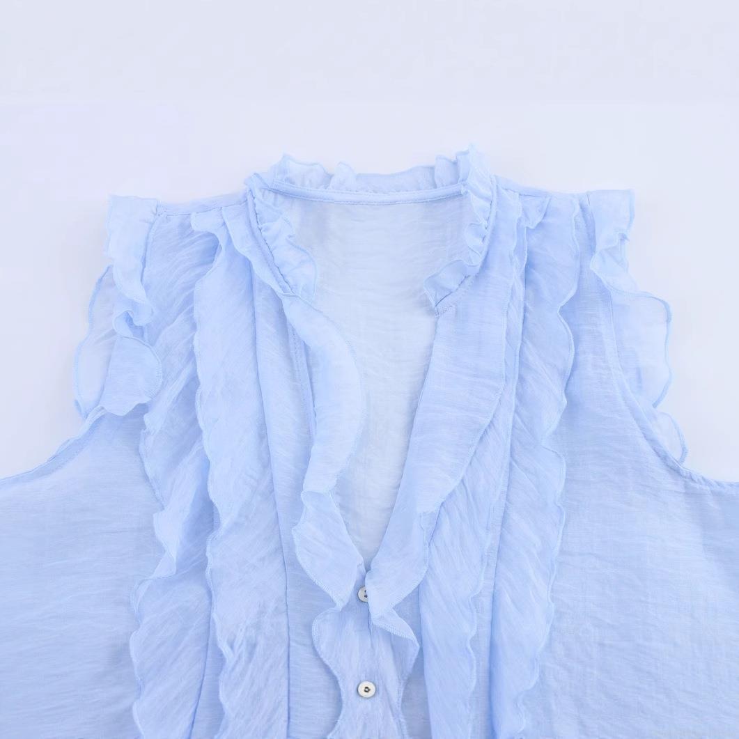 • Women's Sky Blue Sleeveless Chiffon Top Elegant Layered Ruffle Trim Wood Ear Collar Slim Fit Tank Top Summer Casual Party Dating Socialite Blouse