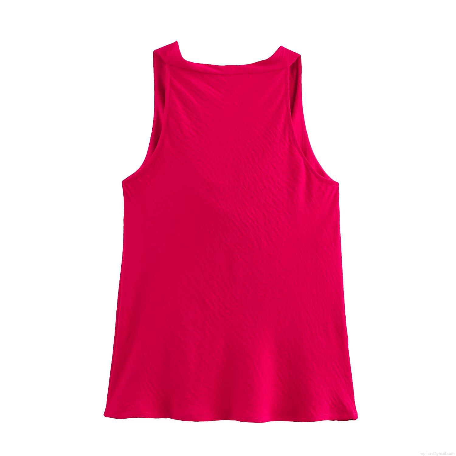 • Women's Sleeveless Cowl Neck Top Elegant Satin Finish Polyester Spandex Blouse With Gold Cicada Pin Magenta Solid Color Casual Office Wear Ladies Shirt
