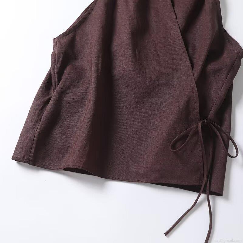 • Women's Sleeveless Halterneck Wrap Top 70% Ramie And 30% Cotton V-Neck Side-Tie Solid Color Elegant Summer Blouse For Women Date Vacation