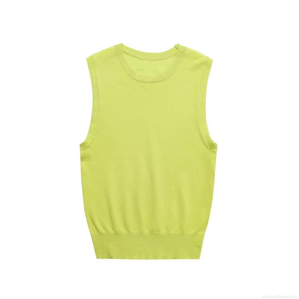 • Women's Sleeveless Knit Tank Top Y2K Style Round Neck Ribbed Hem Slim Fit Polyester Summer Casual Vest Top Ladies Solid Striped Basic Top