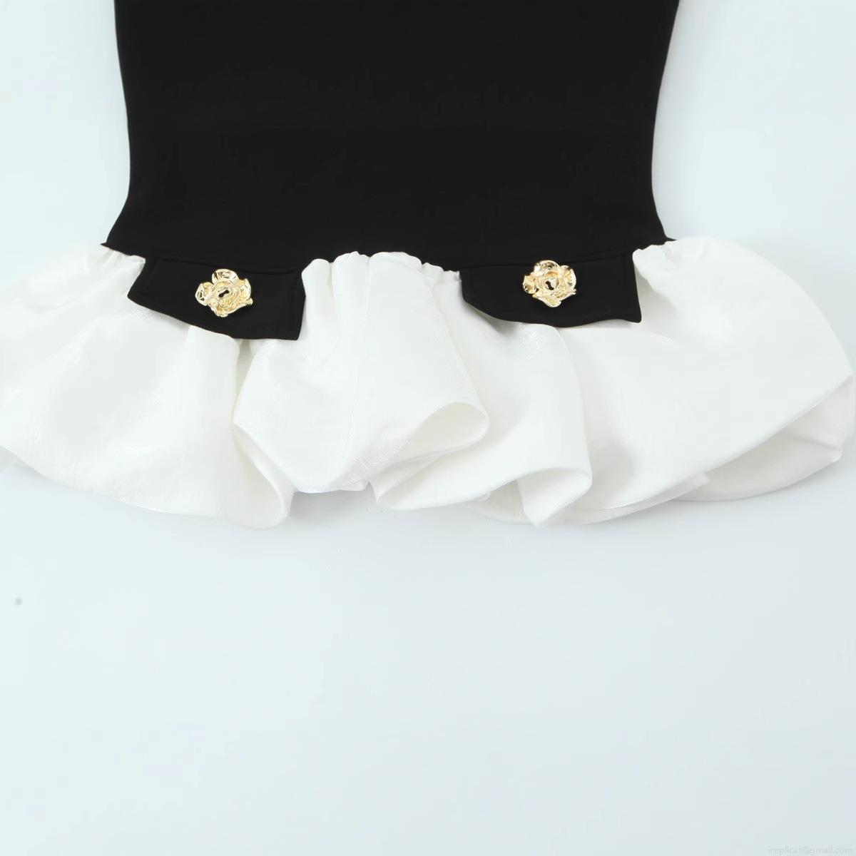 Splice, Black And White Color Blocking, Ruffles, Color Blocking, Gold Rose Buttons