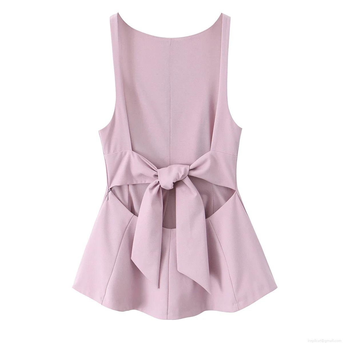 • Women's Sleeveless Peplum Top Polyester Blend Bow Backless Back Ruffle Hem Tank Top For Party Dating Elegant Slim Fit Cami Top