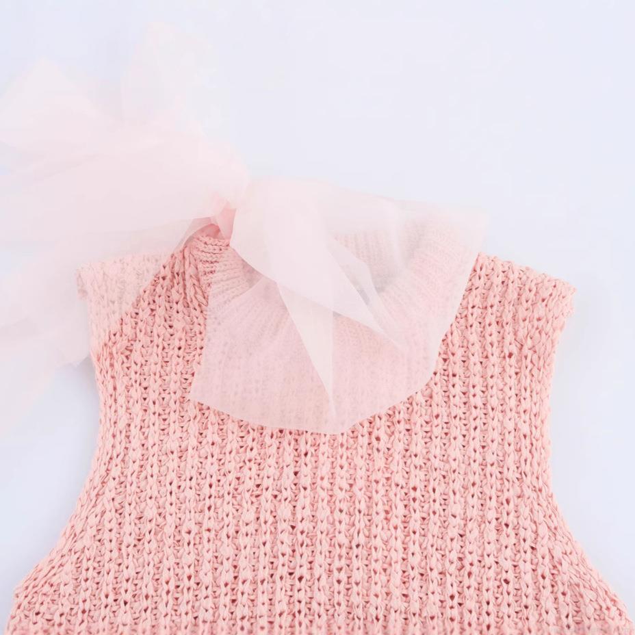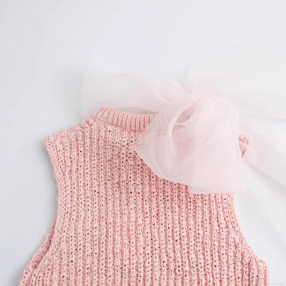 • Women's Sleeveless Round Neck Knitted Tank Top With Large Organza Bow Decoration Chic Polyester Streetwear Summer Casual Peachy Pink Top