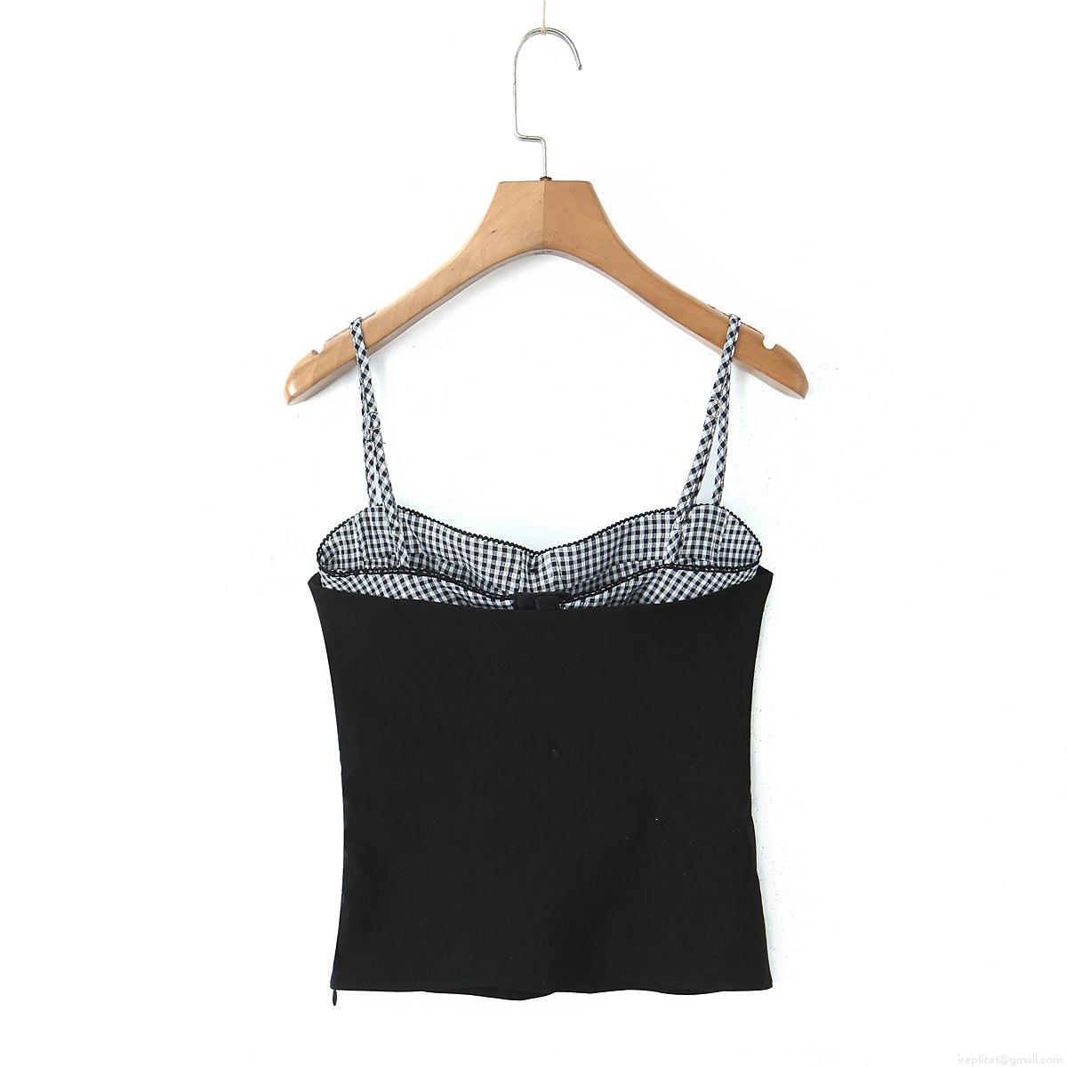 • Women's Slim Fit Camisole Tank Top Polyester Gingham Contrast Splicing Spaghetti Strap Button Decor Streetwear Sexy Summer Vest Top