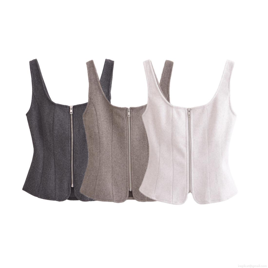 • Women's Slim Fit Corset Top Polyester Woolen Texture Square Neck Backless Sleeveless Vest With Front Zipper American Street Style Crop Top for Party Wear