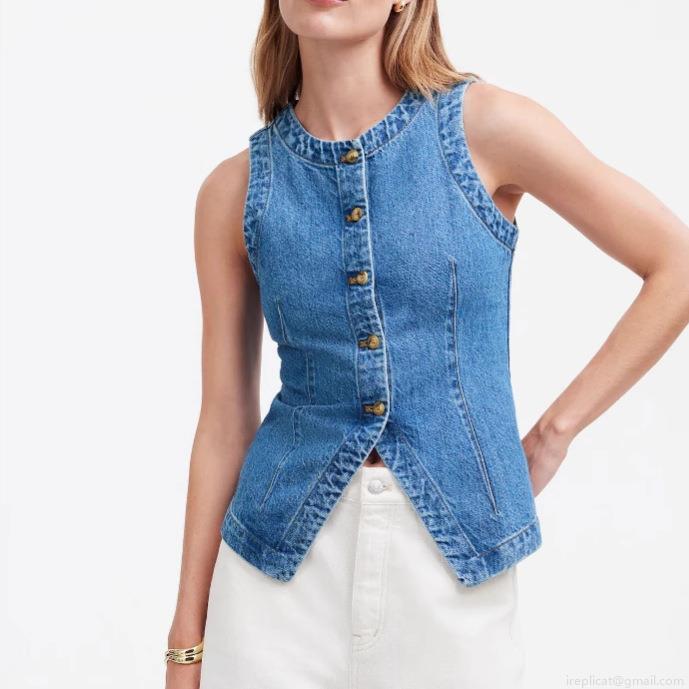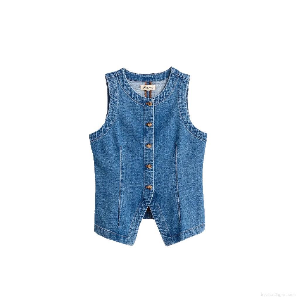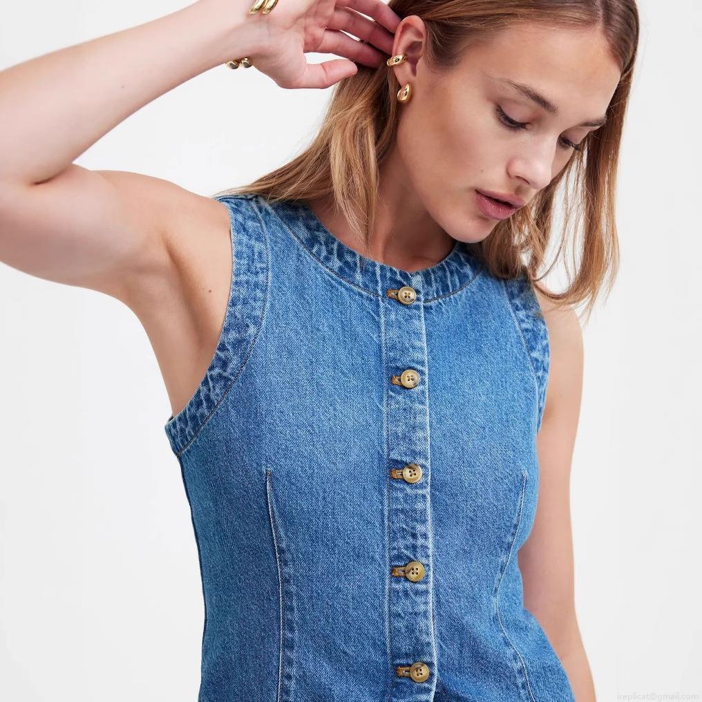 • Women's Slim Fit Denim Vest Sleeveless Round Neck Single Breasted Washed Blue Denim Waistcoat Casual Streetwear Top For Women Fashionable Outerwear