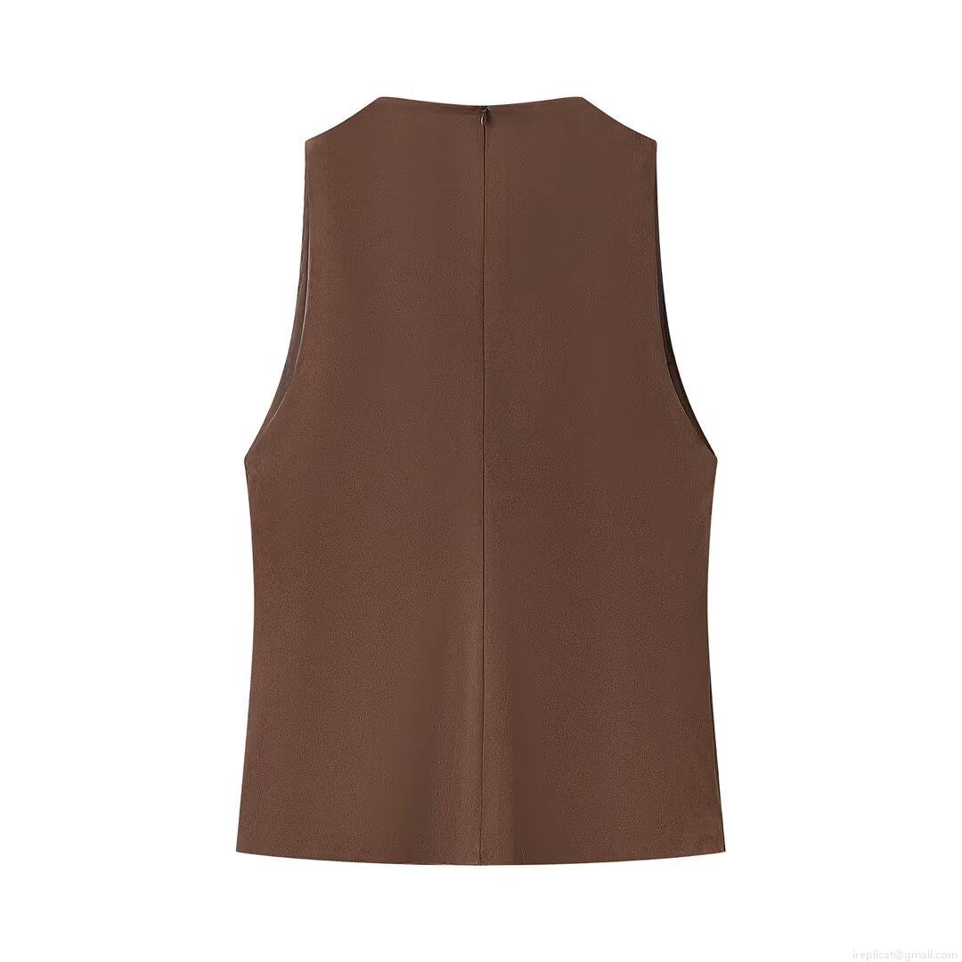 • Women's Slim Fit Faux Suede Tank Top Vest Solid Color Round Neck Sleeveless Shirt With Back Invisible Zipper For Daily Party Streetwear