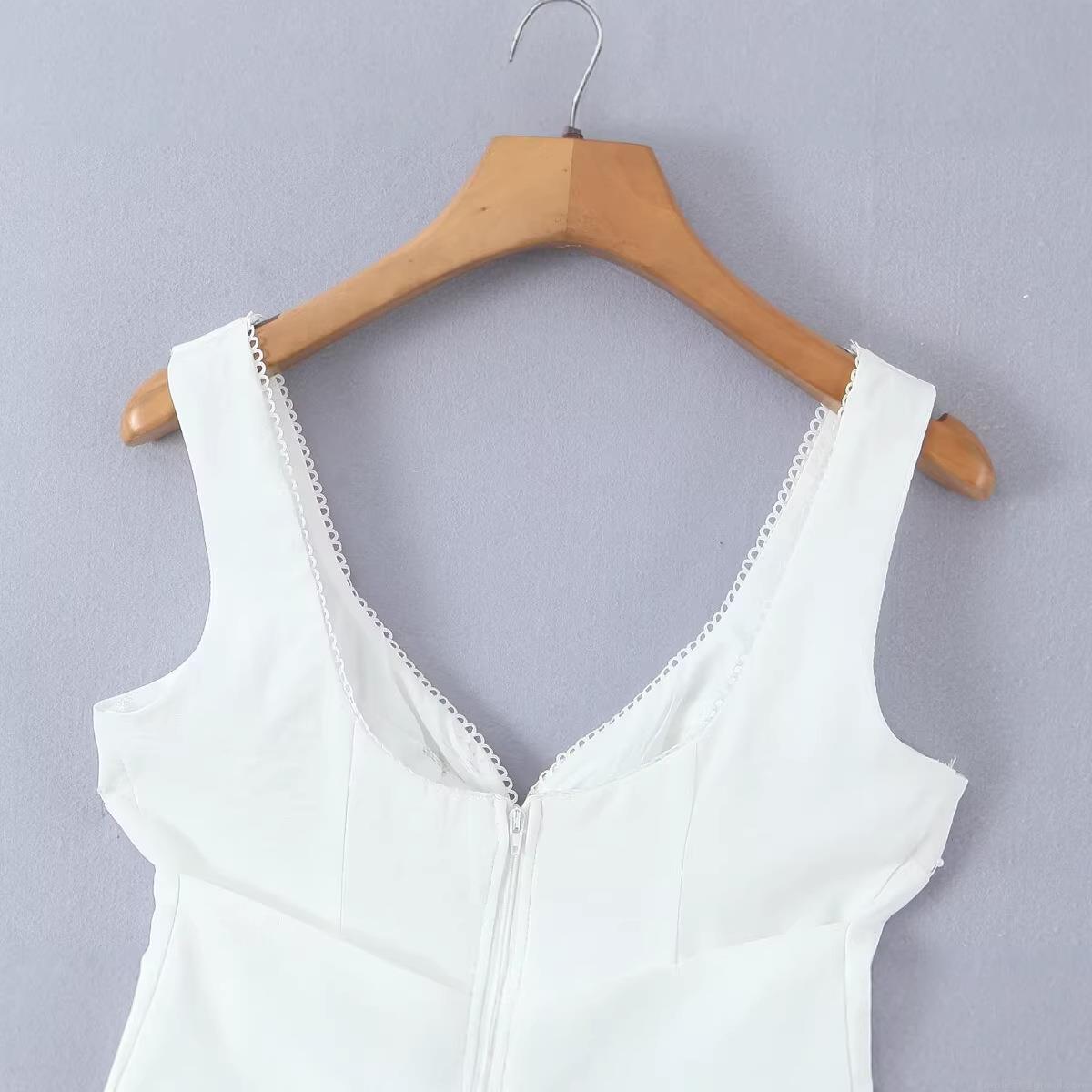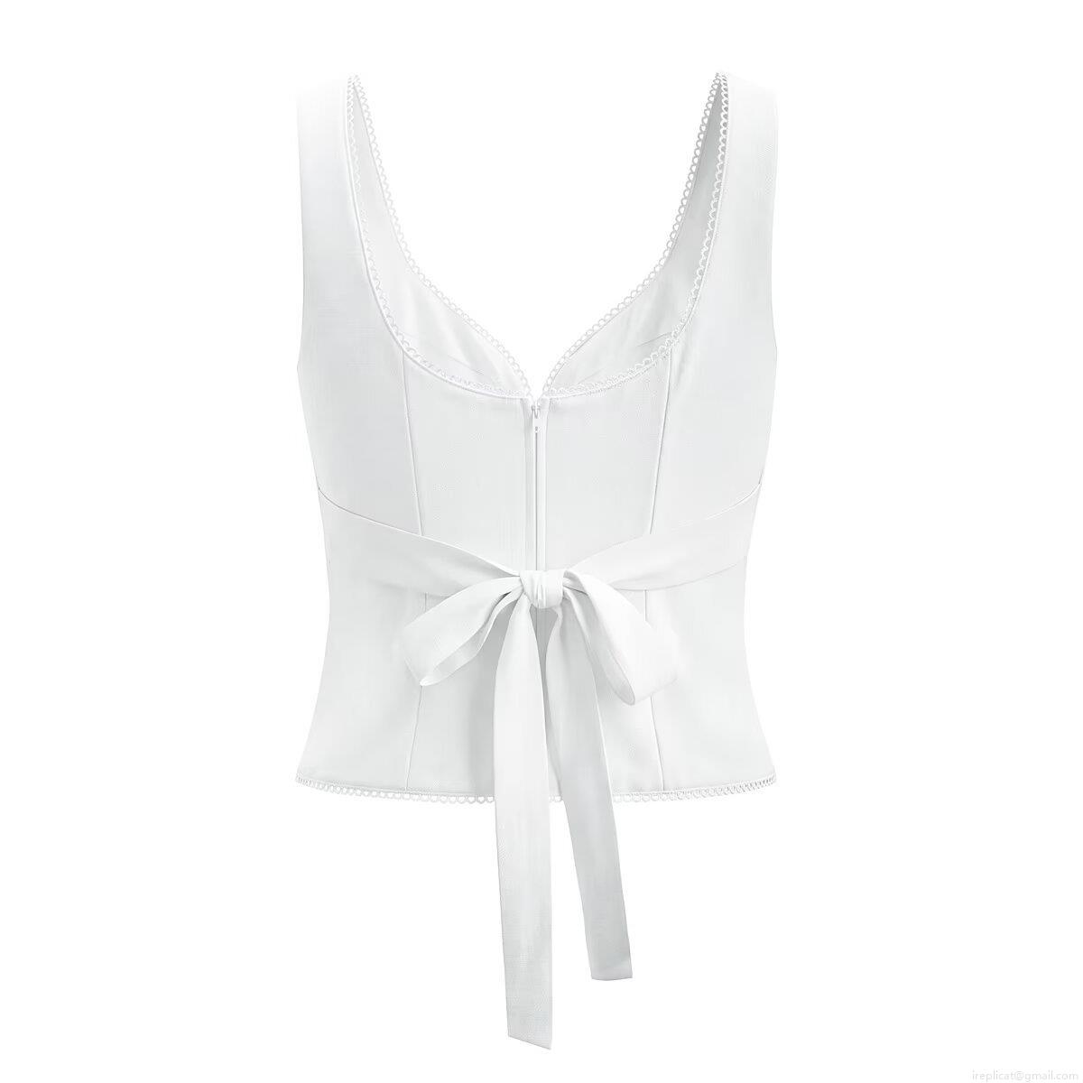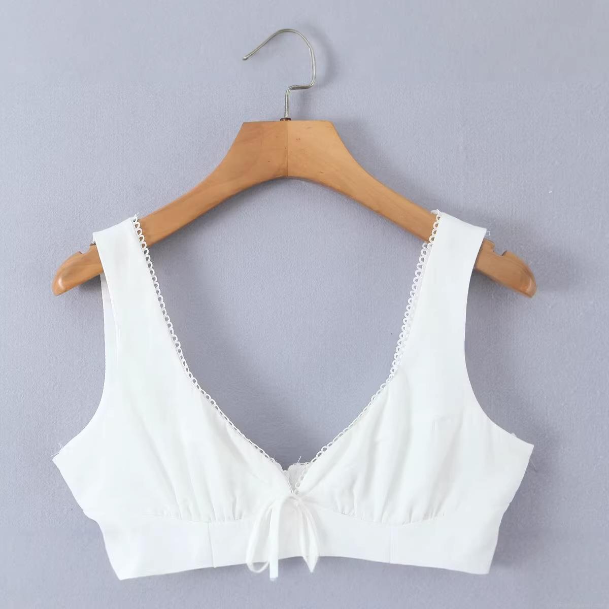 • Women's Slim Fit Lace V-Neck Camisole White Cotton Blend Tank Top With Bow Tie Front And Back Zipper Sleeveless Vest For Summer Casual Daily Wear