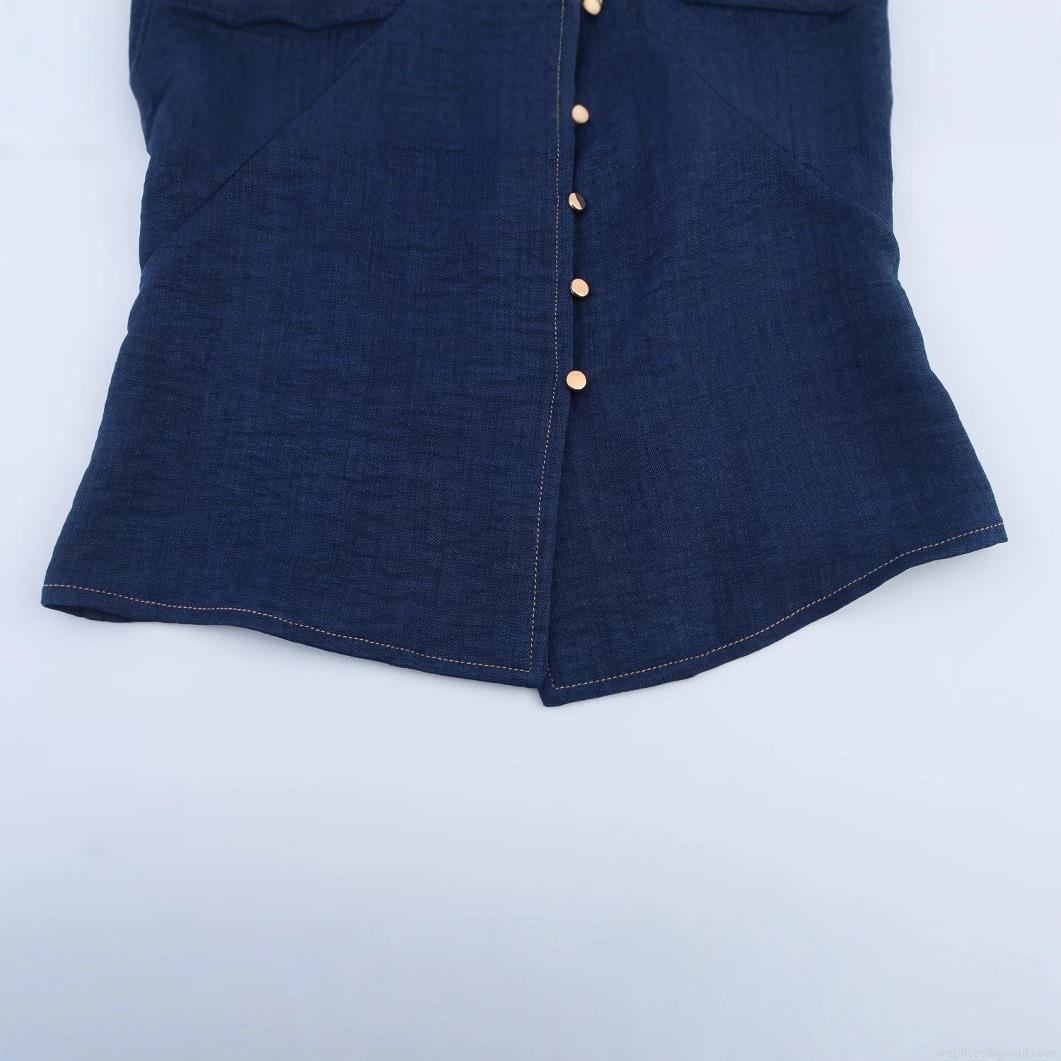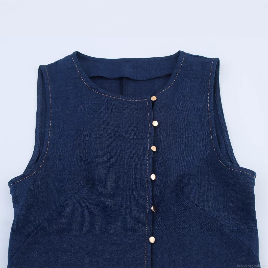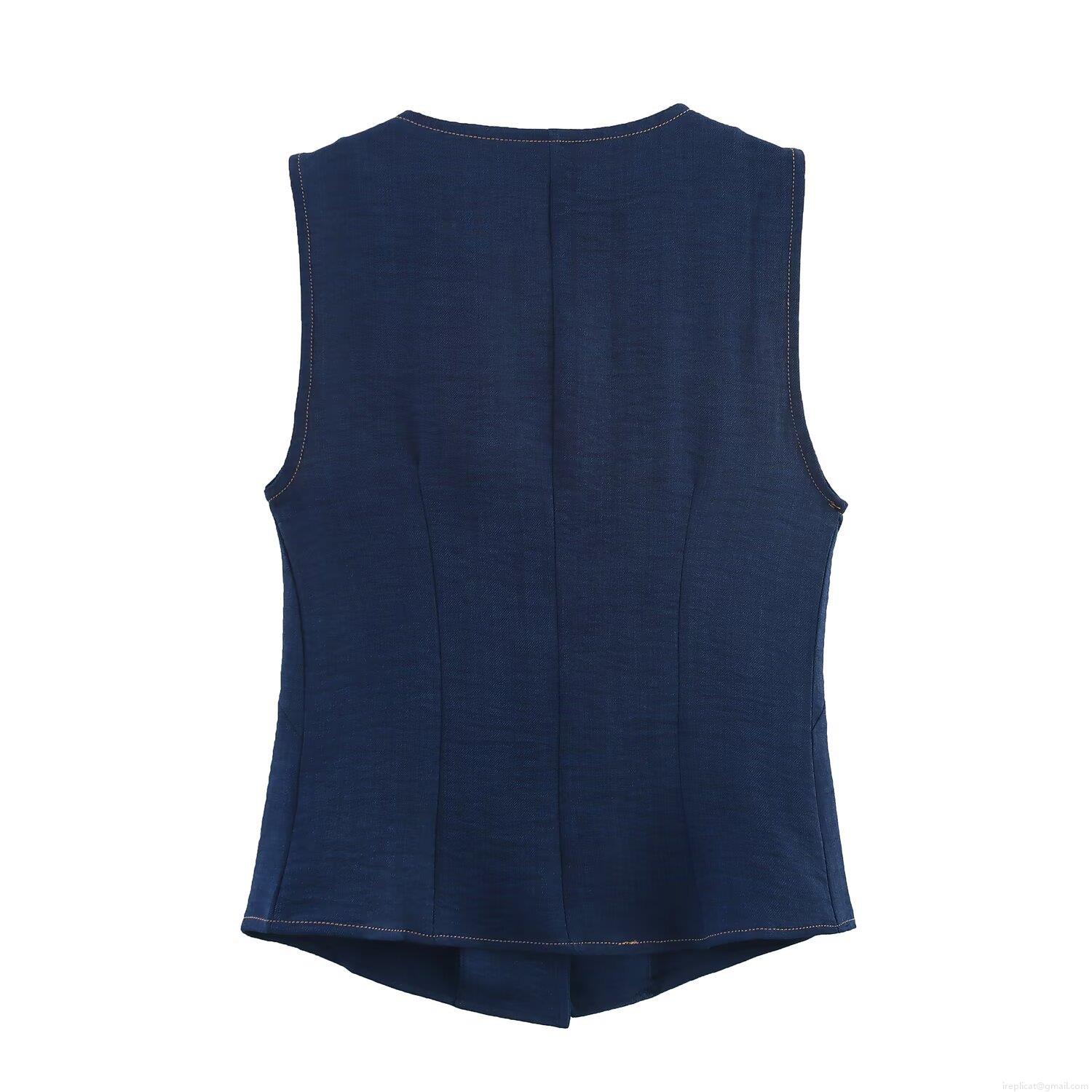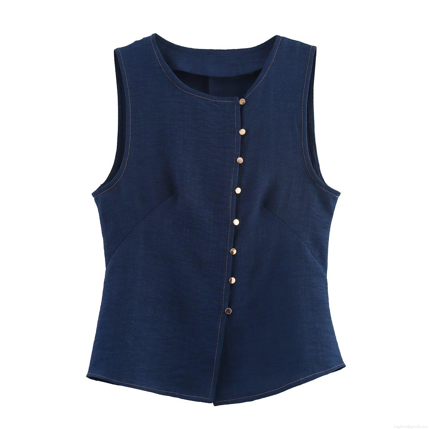 • Women's Slim Fit Linen Texture Vest Elegant Double Breasted Tank Top With Gold Metal Buttons For Daily Office Wear Short Sleeveless Top For Women