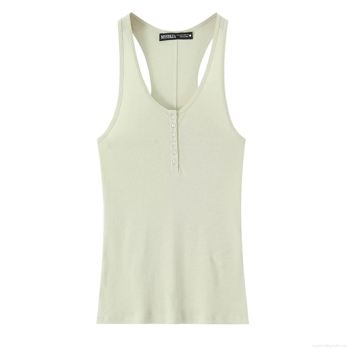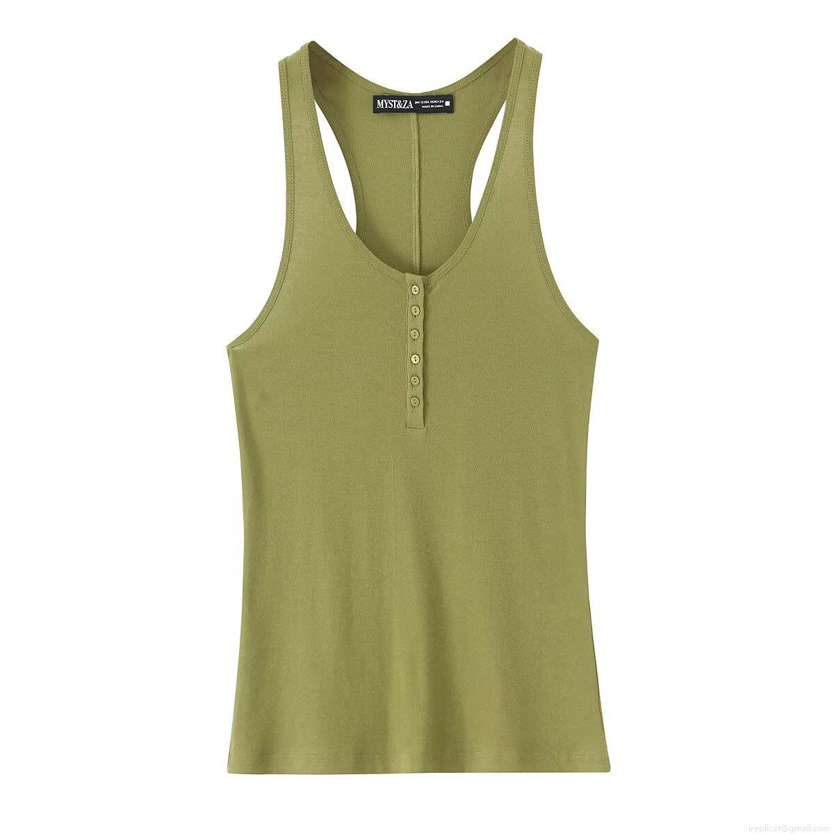 • Women's Slim Fit Ribbed Knit Henley Tank Top Racerback Sleeveless Shirt With Decorative Buttons Solid Color Summer Casual Camisole Top