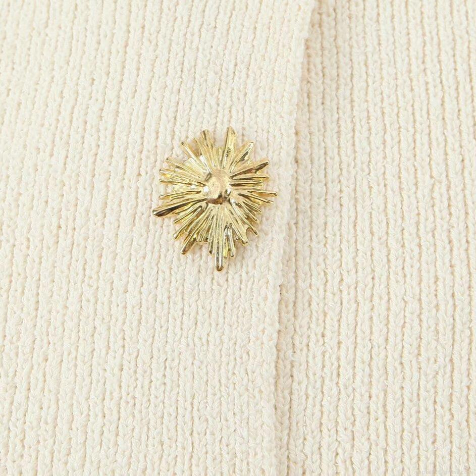 Solid Color, Vertical Stripes, Gold Sunflower Buttons, Vertical Rib