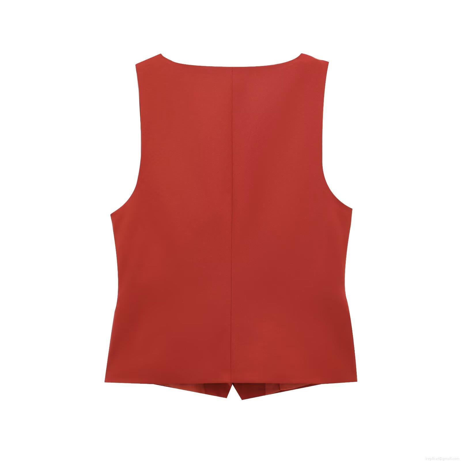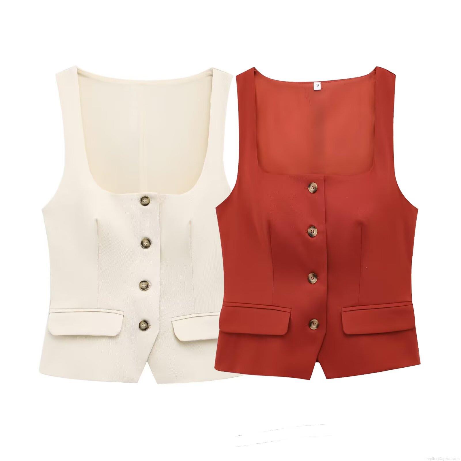 • Women's Slim Fit Square Neck Button Up Suit Vest Sleeveless Business Work Office Waistcoat Casual Polyester Blend Tank Top