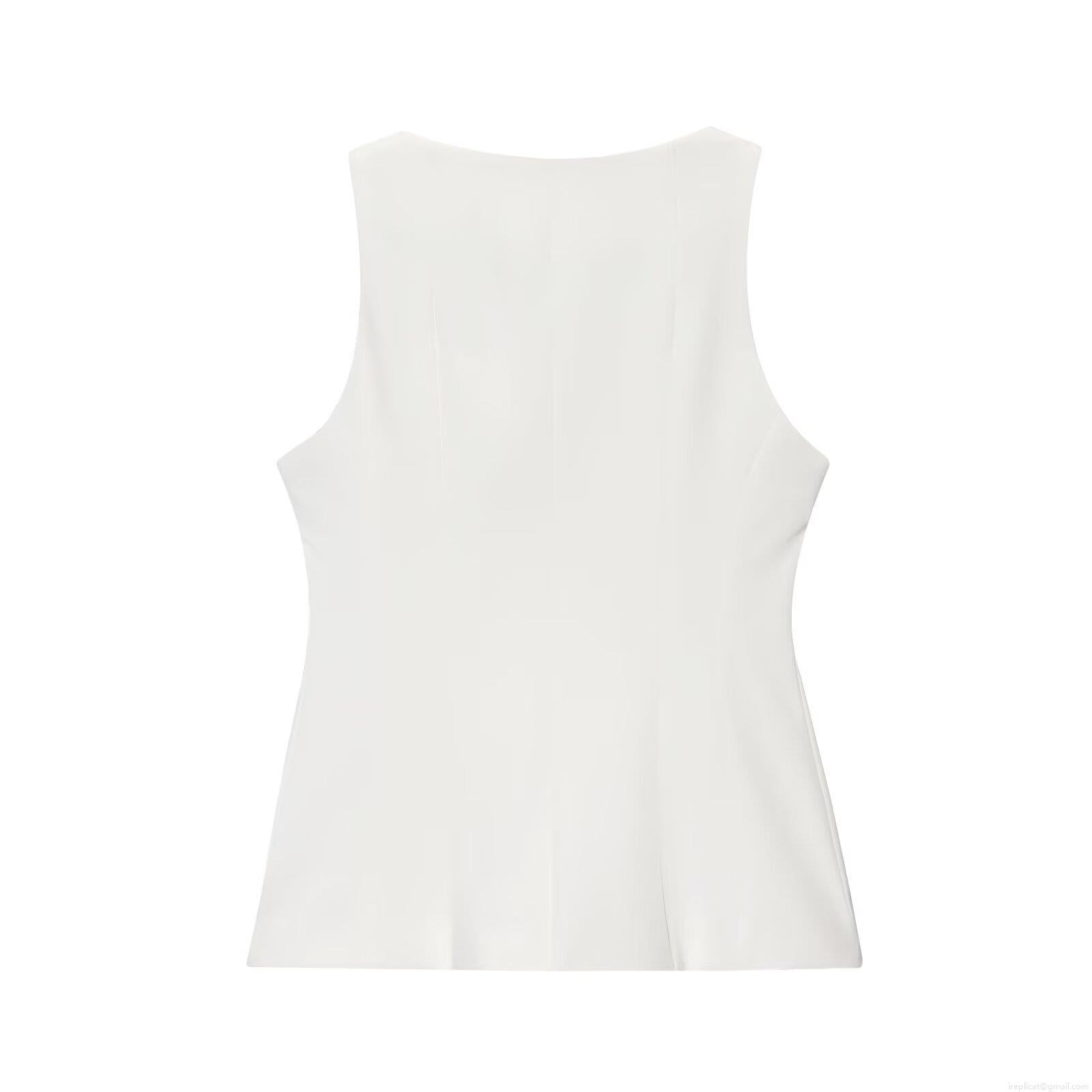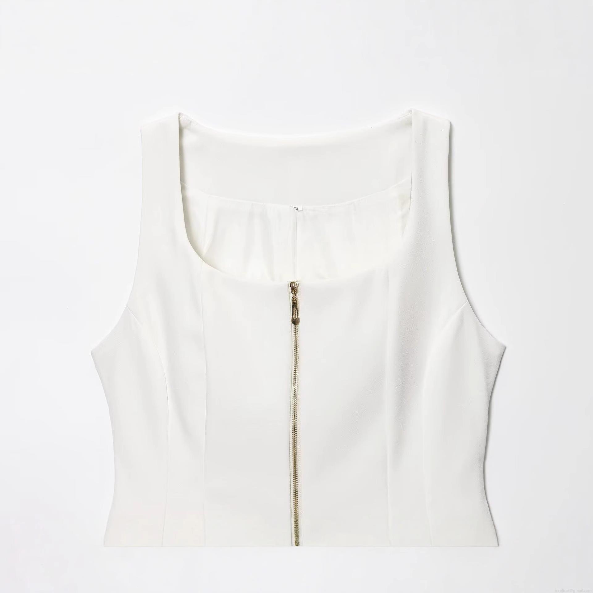 • Women's Slim Fit White Square Neck Tank Top Minimalist Sleeveless Polyester Vest With Front Metal Zipper For Party Clubwear Daily Wear