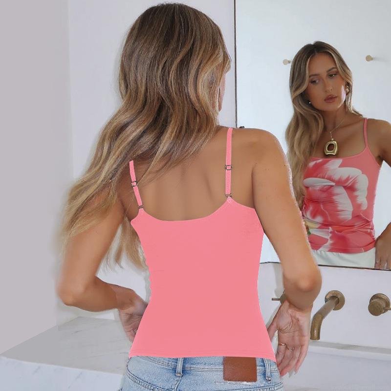 • Women's Spaghetti Strap Camisole Sexy Backless Floral Print Slim Fit Cropped Tank Top Summer Beach Party European American Street Style Ladies Girls