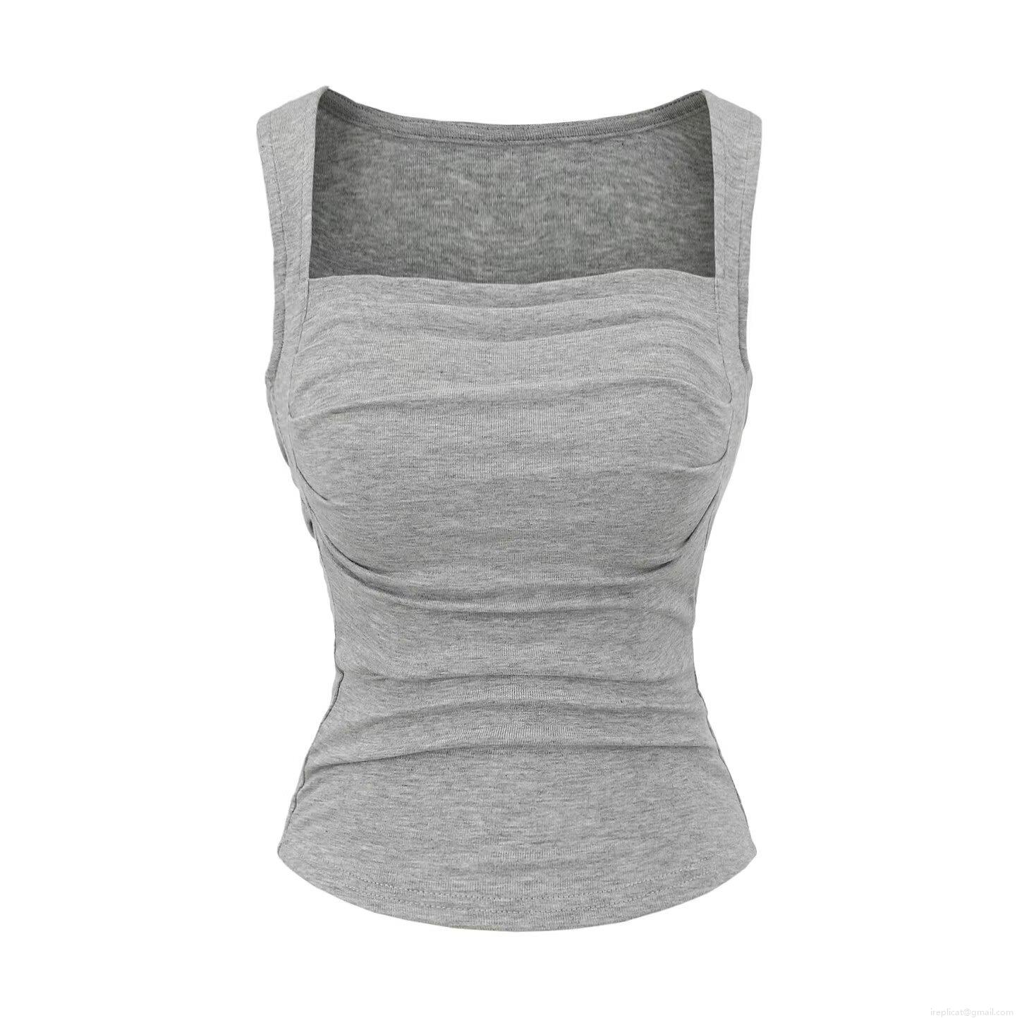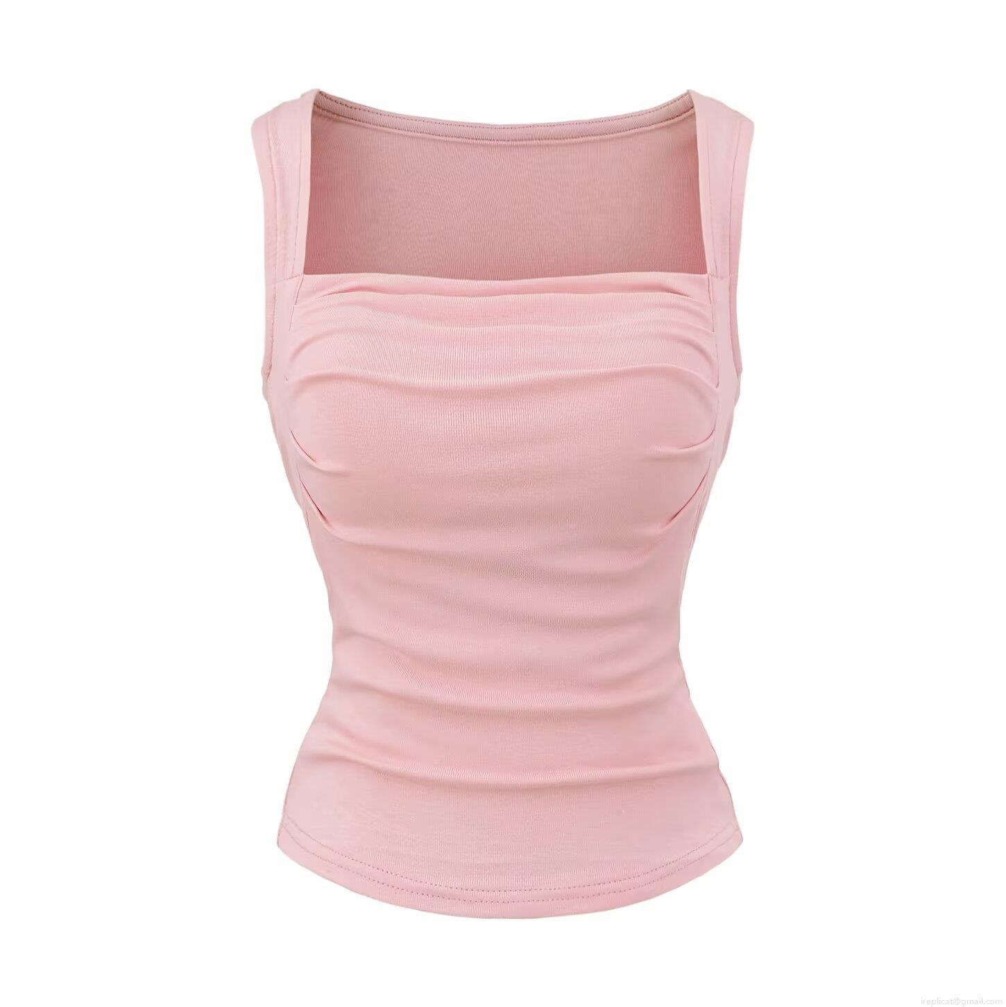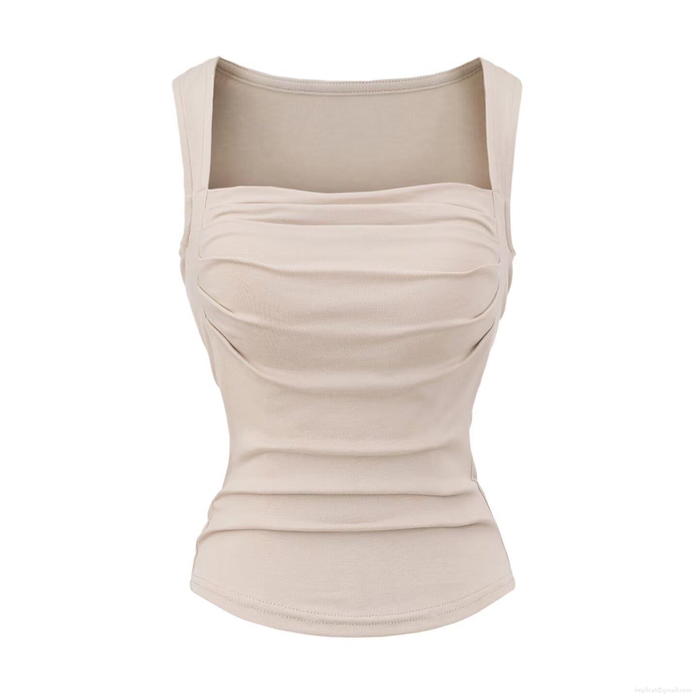 • Women's Square Neck Ruched Tank Top With Chest Pad Sleeveless Viscose Elastane Blend Casual Streetwear Slim Fit Basic T-Shirt