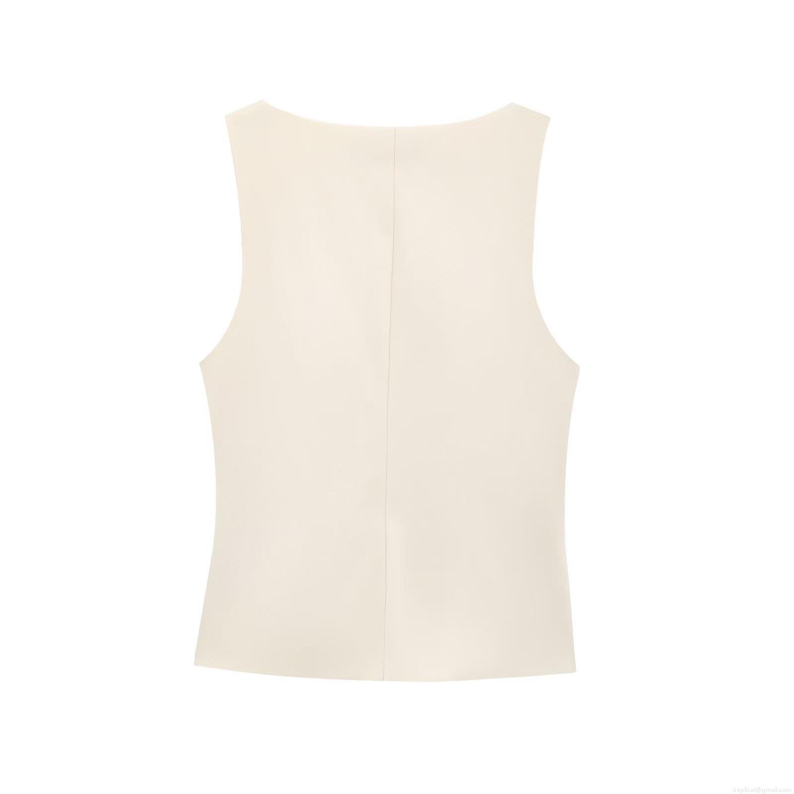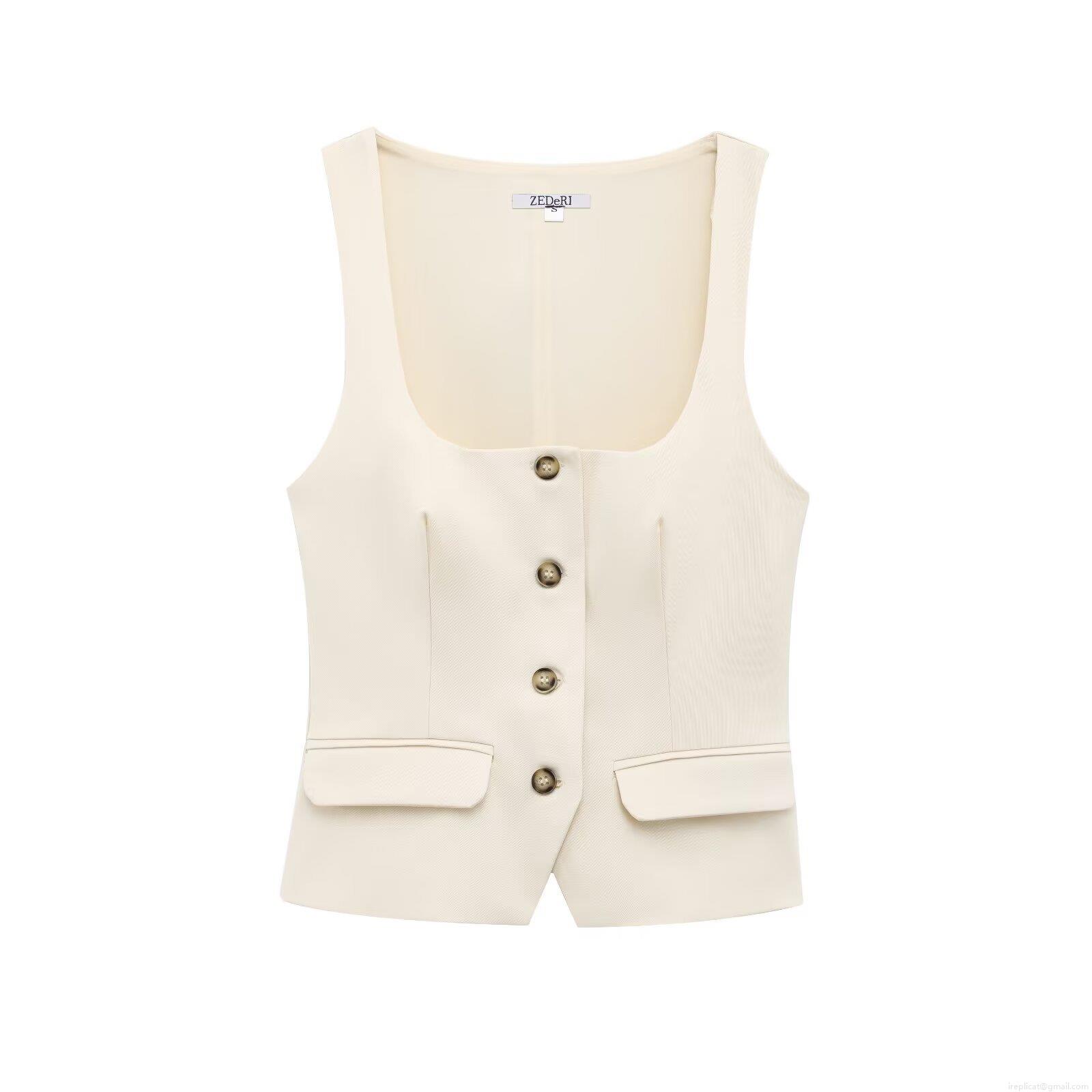 Women's Square Neck Sleeveless Suit Vest Top Button Front Slim Fit Casual Waistcoat Office Streetwear Summer Polyester Blouse