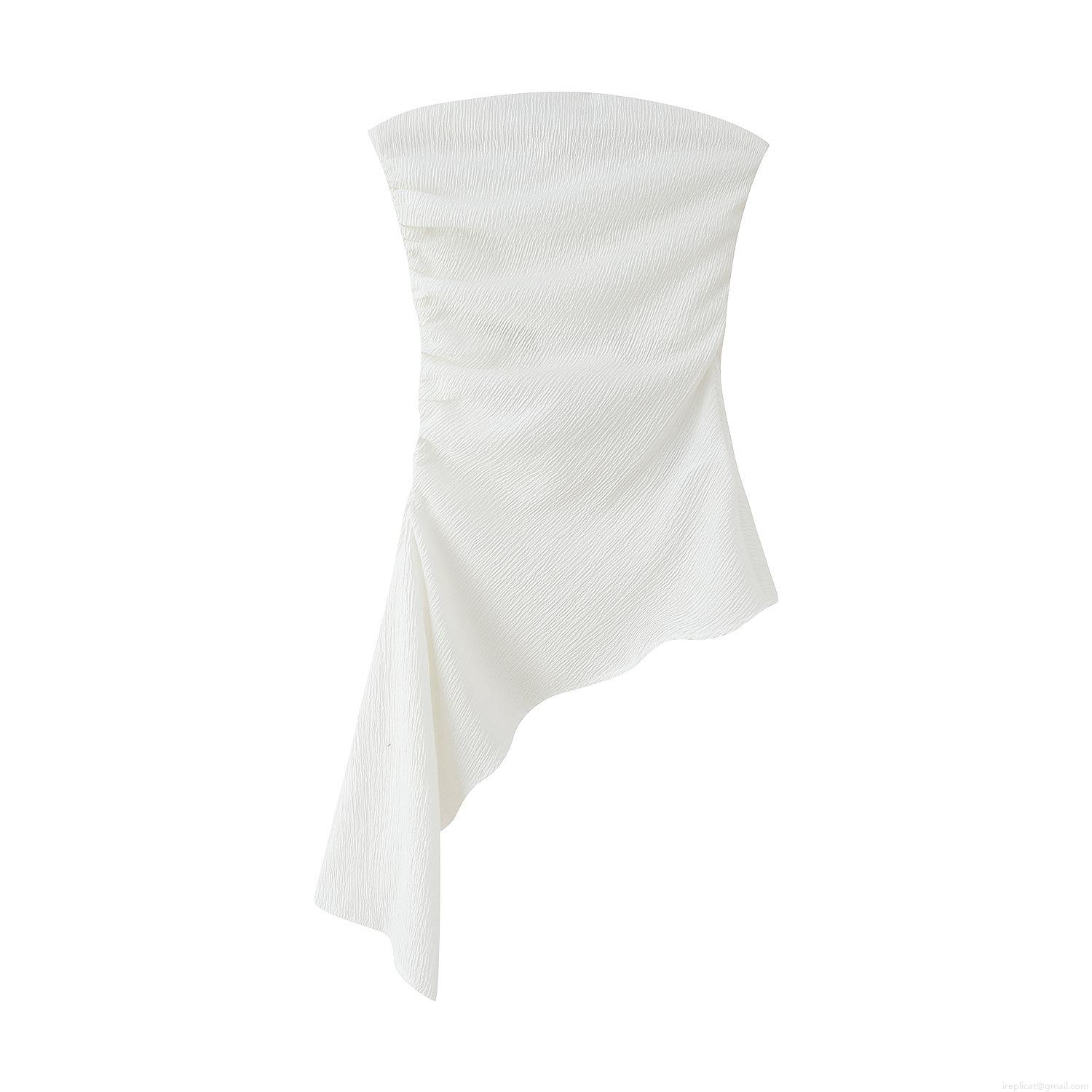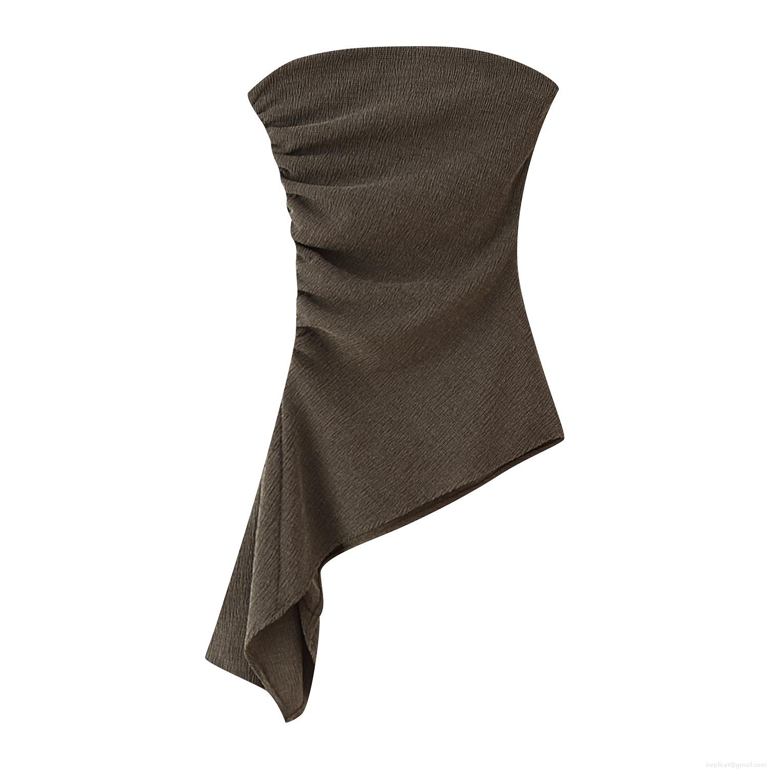• Women's Strapless Bandeau Top Pleated Asymmetric Hem Crop Top Sexy Ruched Off Shoulder Slim Fit Vest For Party Club Casual Summer Top