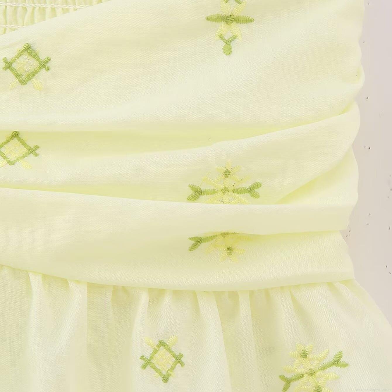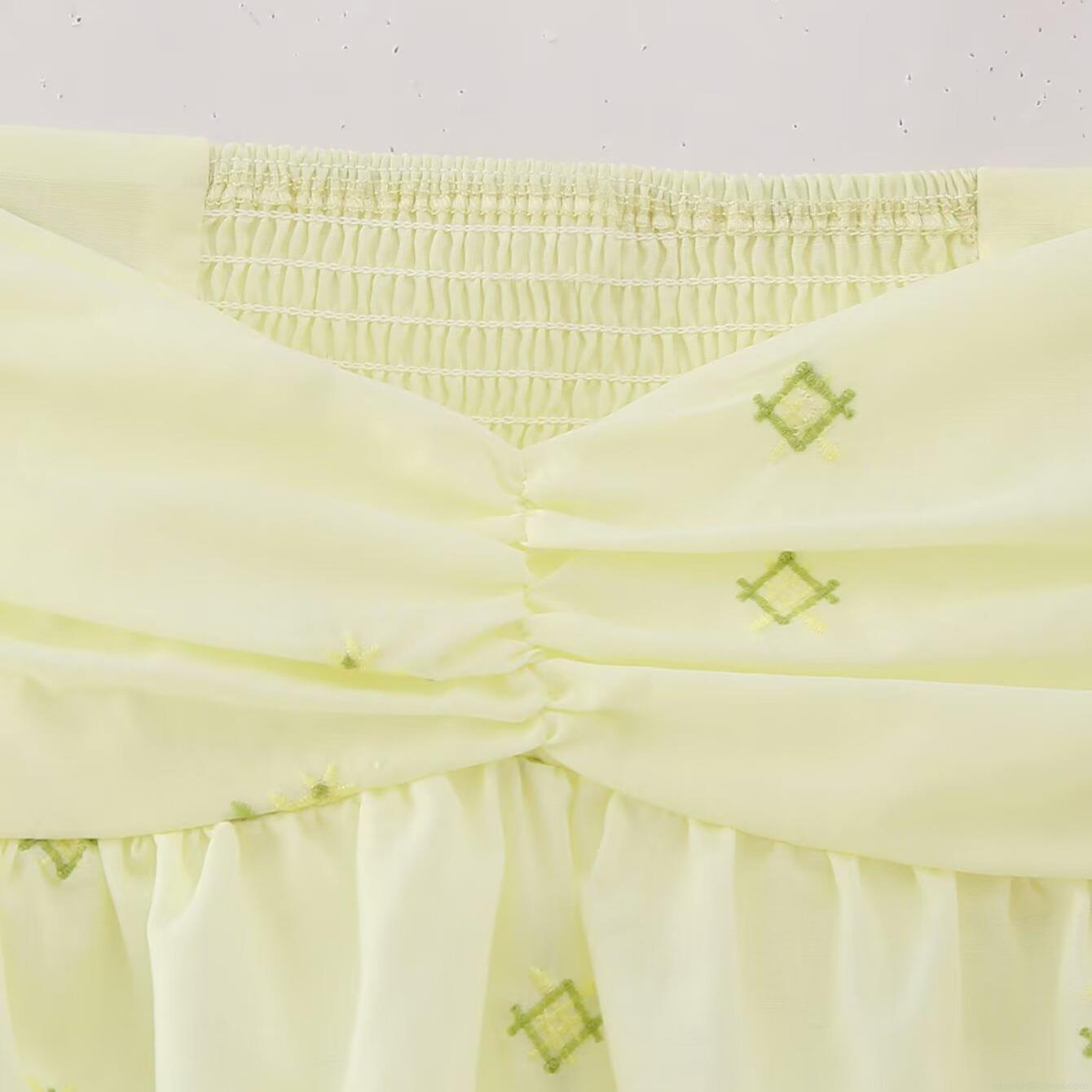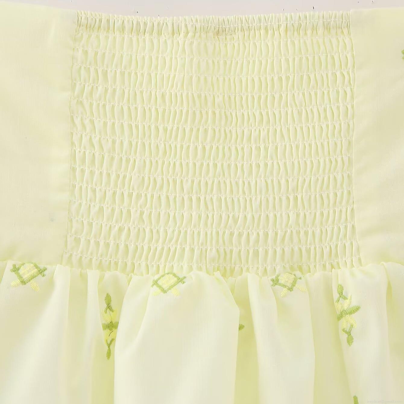 Women's Strapless Tube Top Sexy 100% Polyester Embroidered Ruffled Peplum Smocked Sleeveless Top Fresh Sweet Summer Top for Women