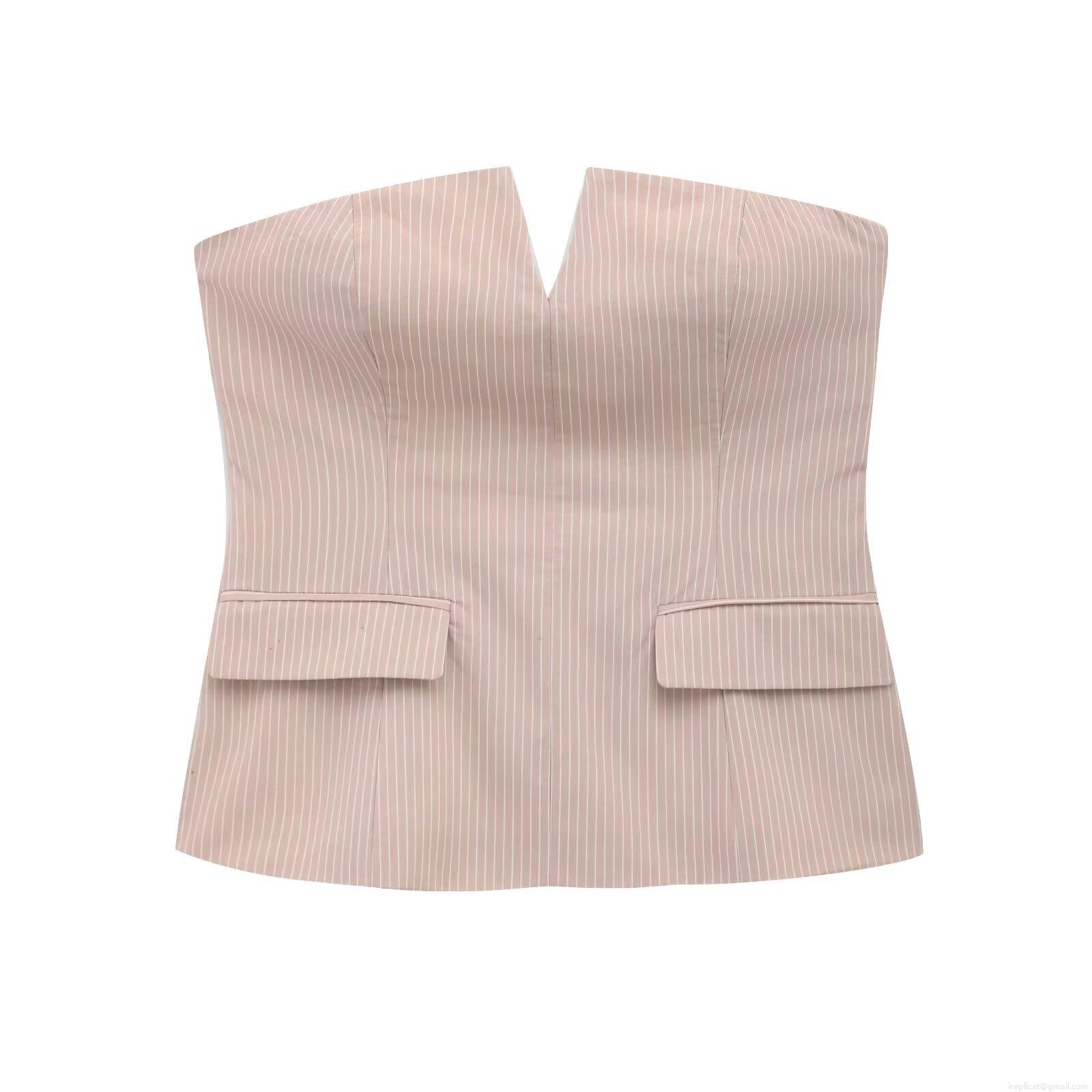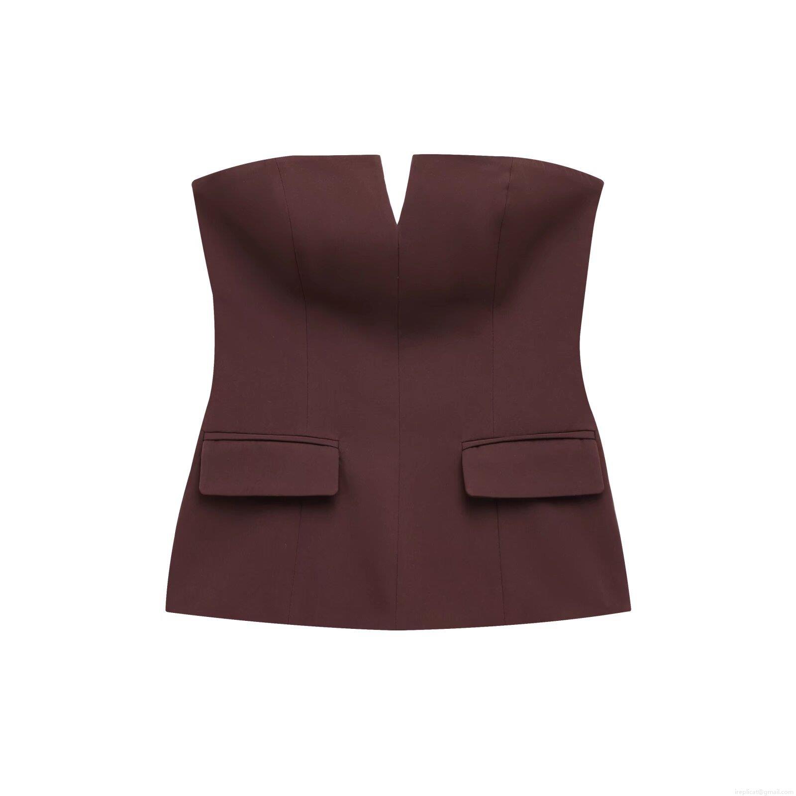 • Women's Strapless Tube Top Sexy Deep V-Neck Slim Fit Polyester Waistcoat Style Corset Top For Summer Party Streetwear Clubwear