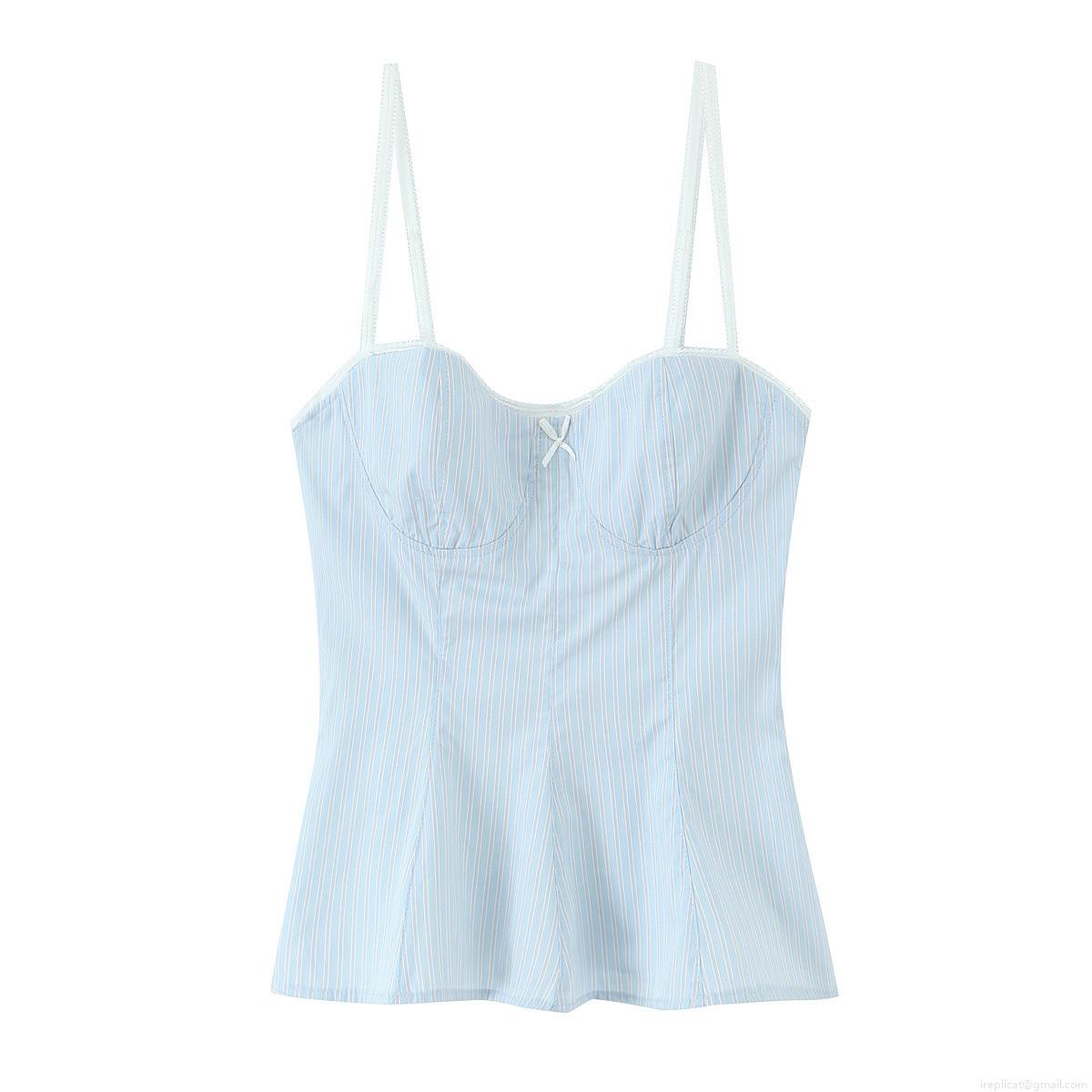 Women's Striped Cami Top Cotton Blend Bow Decor Peplum Hem Sleeveless Tank Top Sexy Summer Vacation Streetwear Camisole
