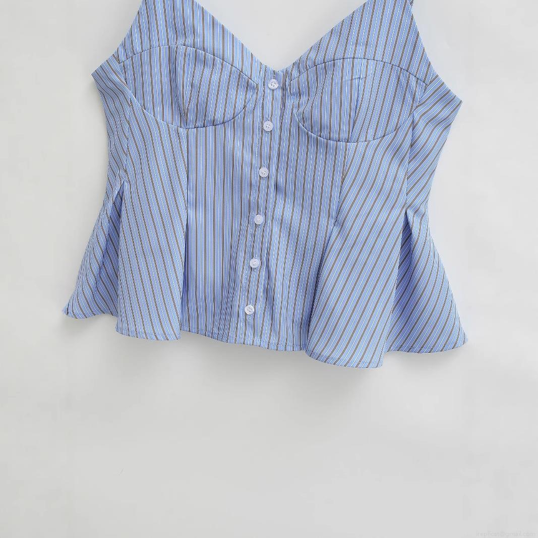 • Women's Striped Camisole Top French Retro V-Neck Button Down Ruffle Hem Sleeveless Tank Top Sexy Slim Fit Poplin Summer Blouse For Women