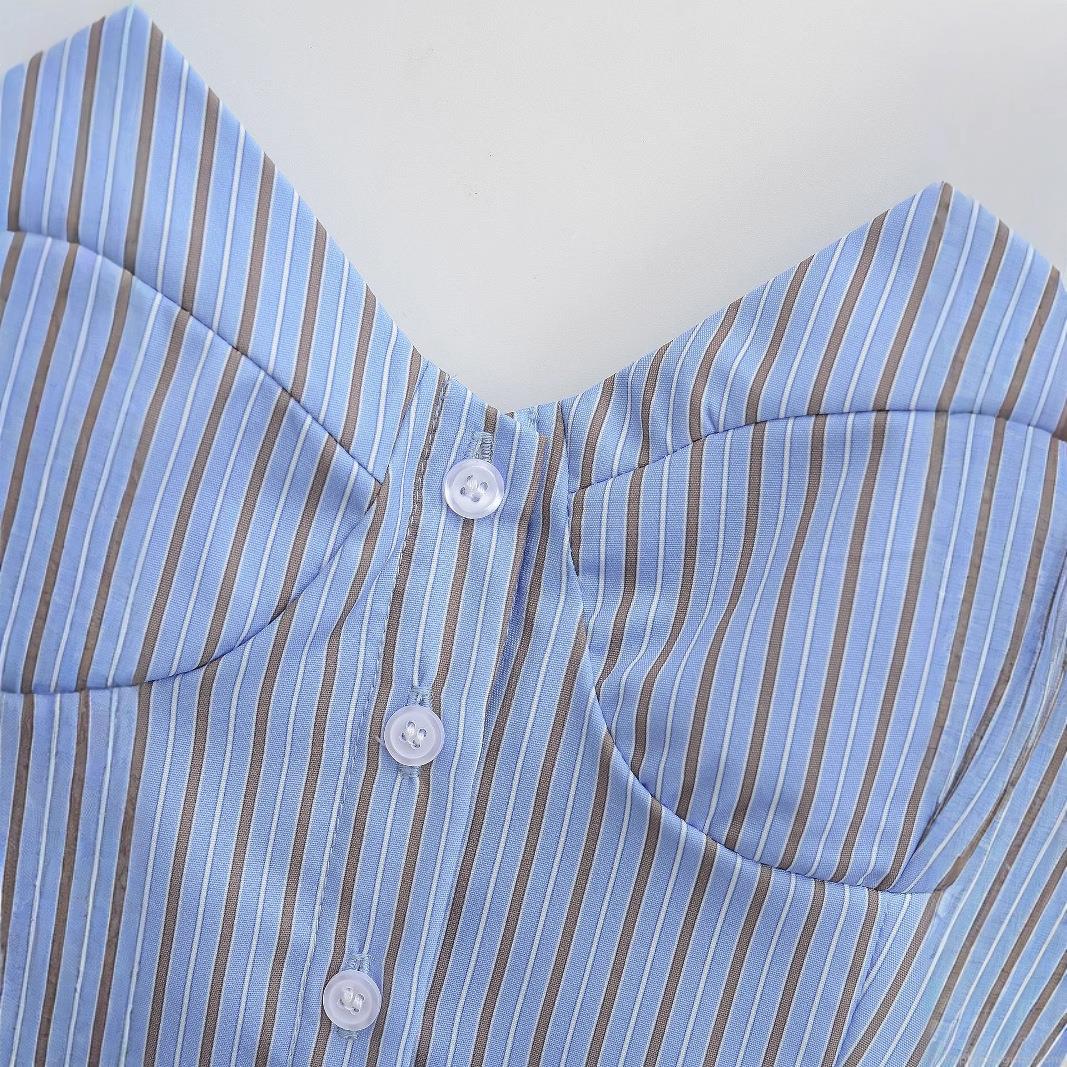 Women's Striped Camisole Top French Retro V-Neck Button Down Ruffle Hem Sleeveless Tank Top Sexy Slim Fit Poplin Summer Blouse For Women