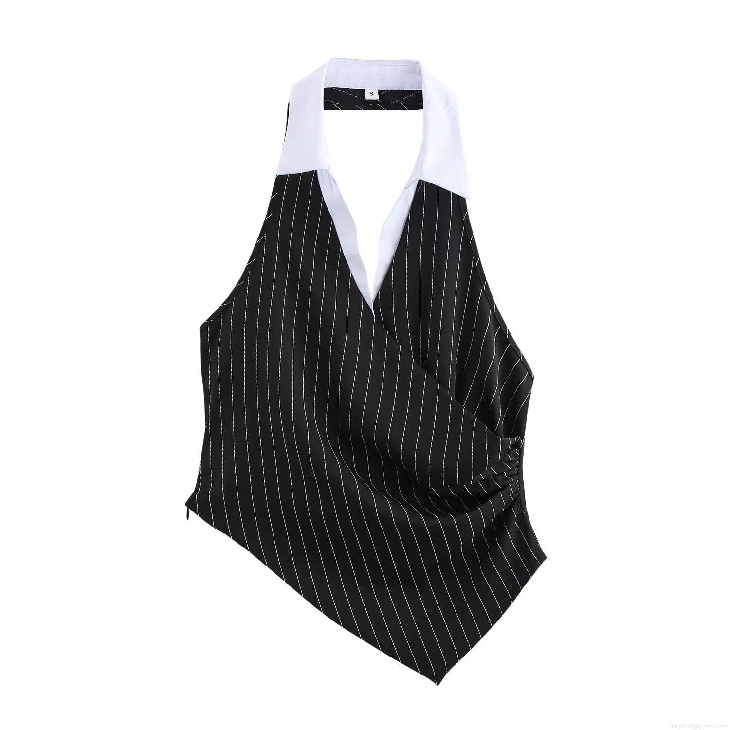 • Women's Striped Halter Top Patchwork V-Neck Backless Vest Irregular Hem Slim Fit Urban Streetwear Sleeveless Polyester Blouse Summer Casual Top