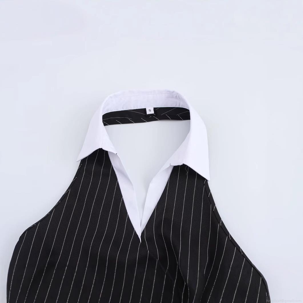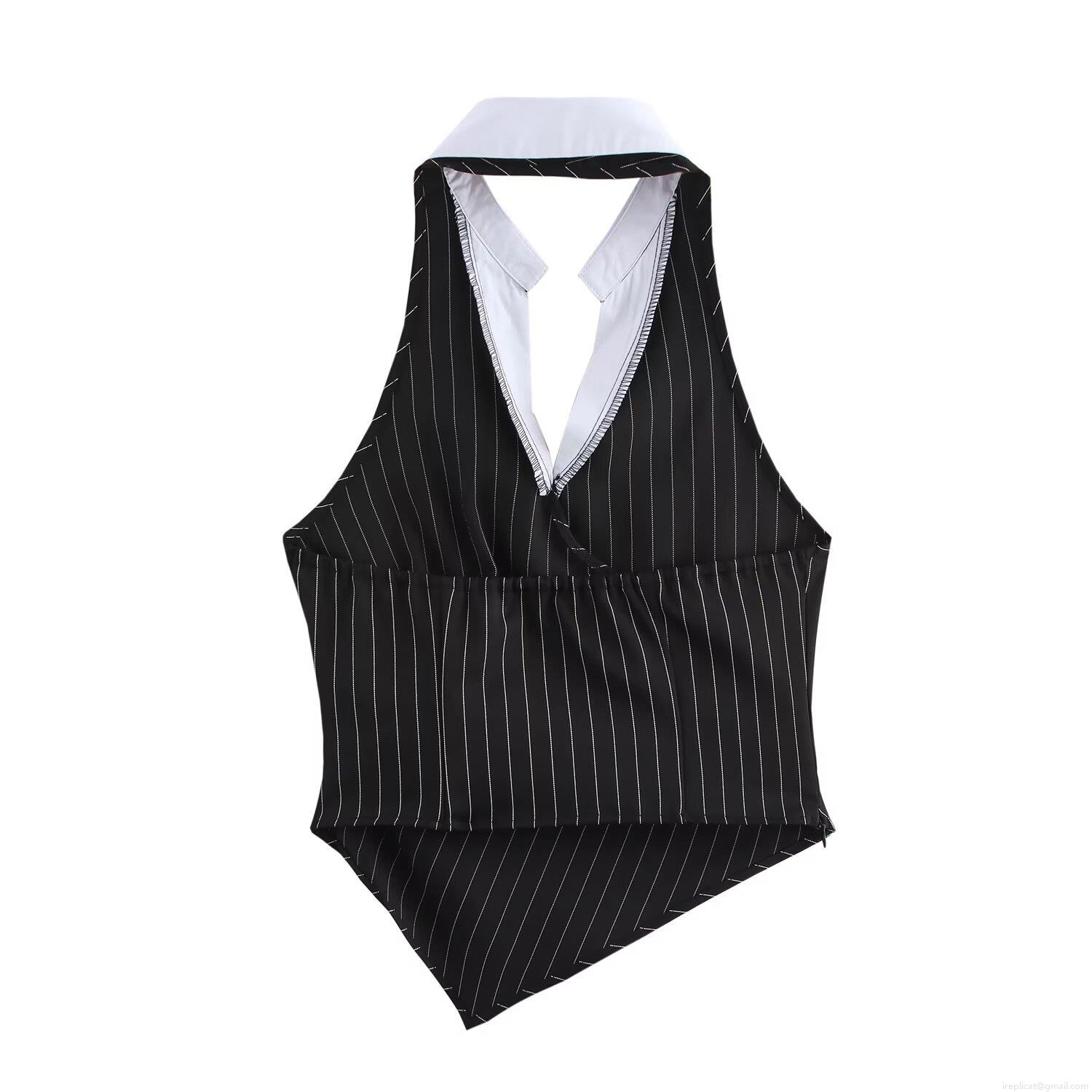Women's Striped Halter Top Patchwork V-Neck Backless Vest Irregular Hem Slim Fit Urban Streetwear Sleeveless Polyester Blouse Summer Casual Top