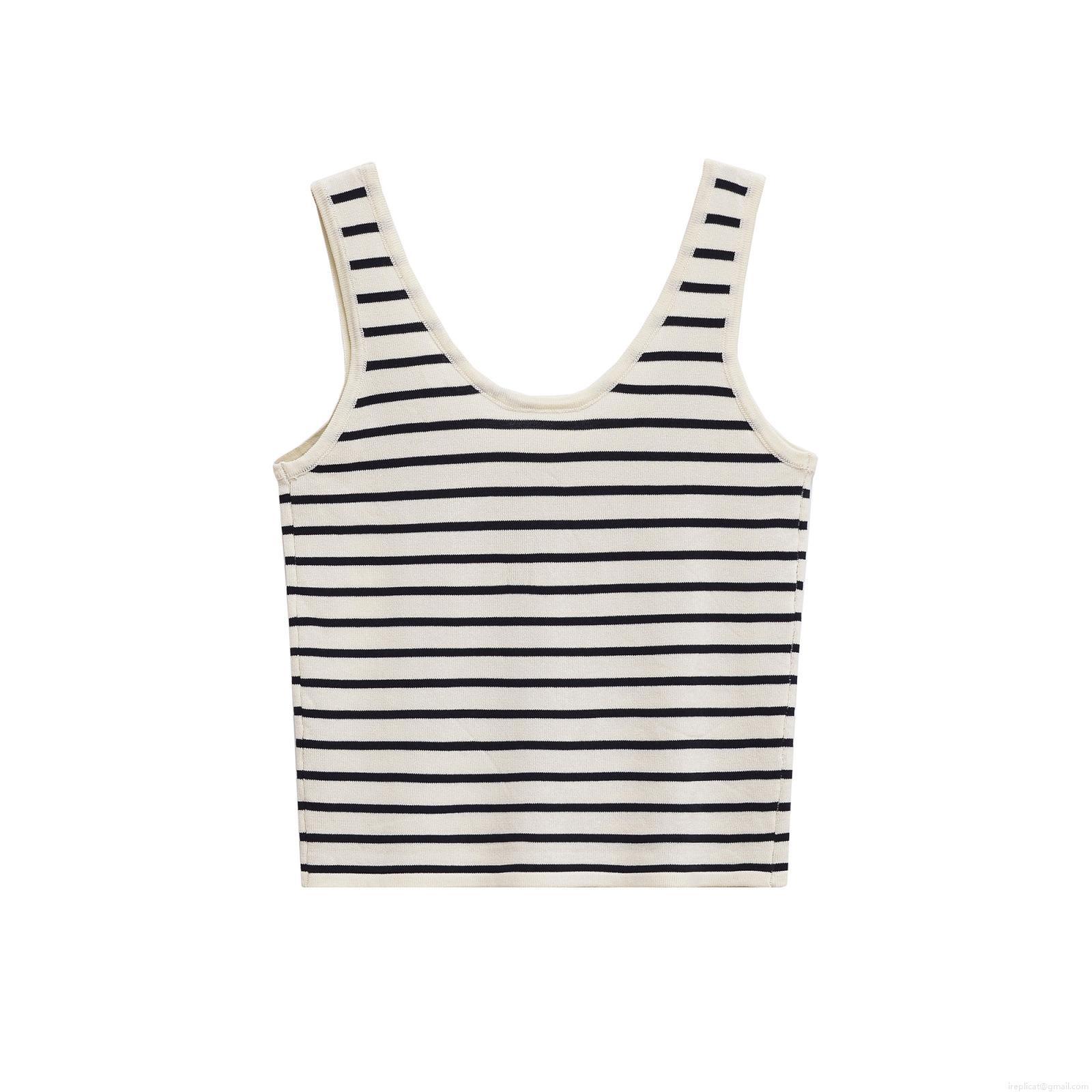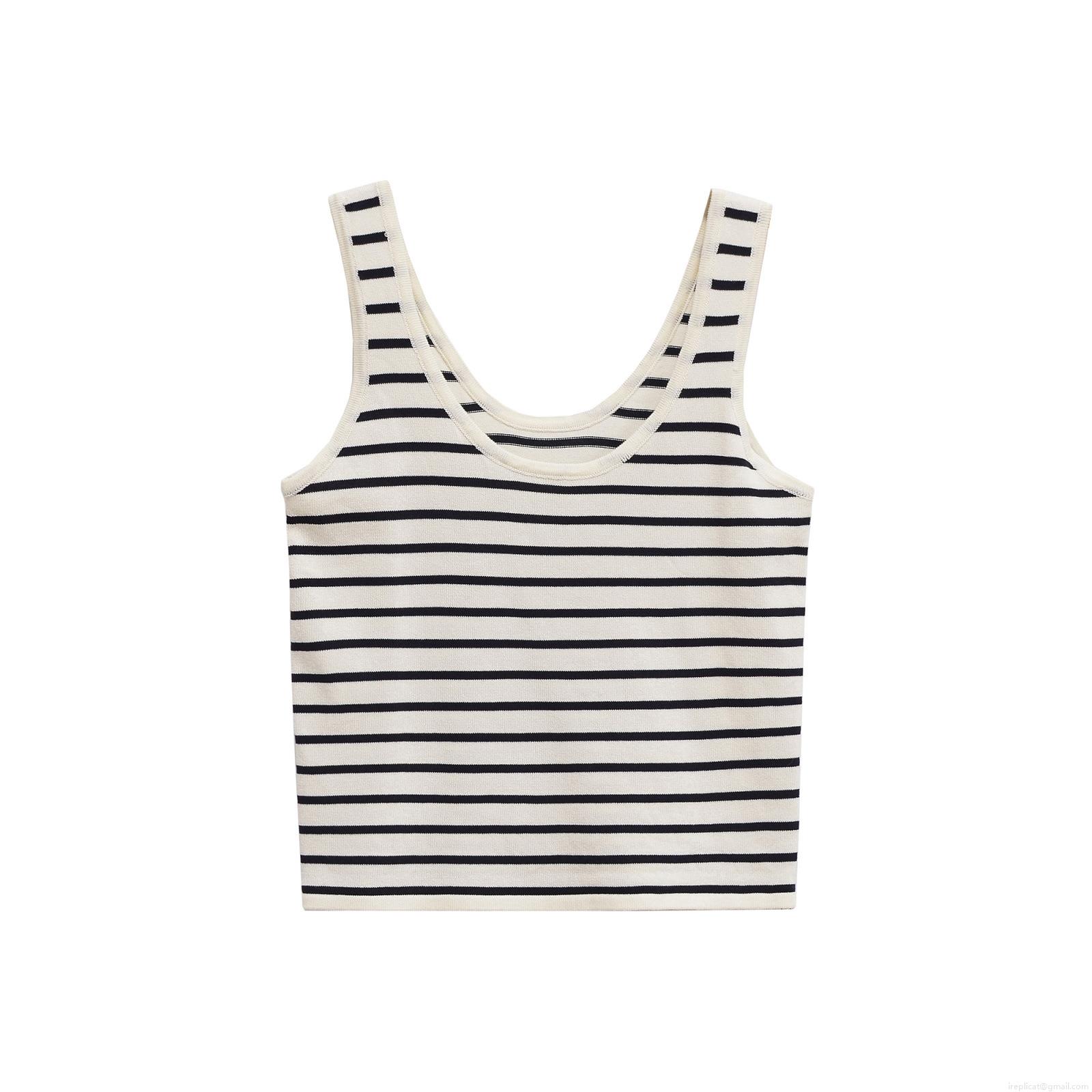 Women's Striped Knit Camisole Polyester Cotton Slim Fit U-Neck Sleeveless Crop Tank Top Streetwear Ribbed Knit Vest Top Black White