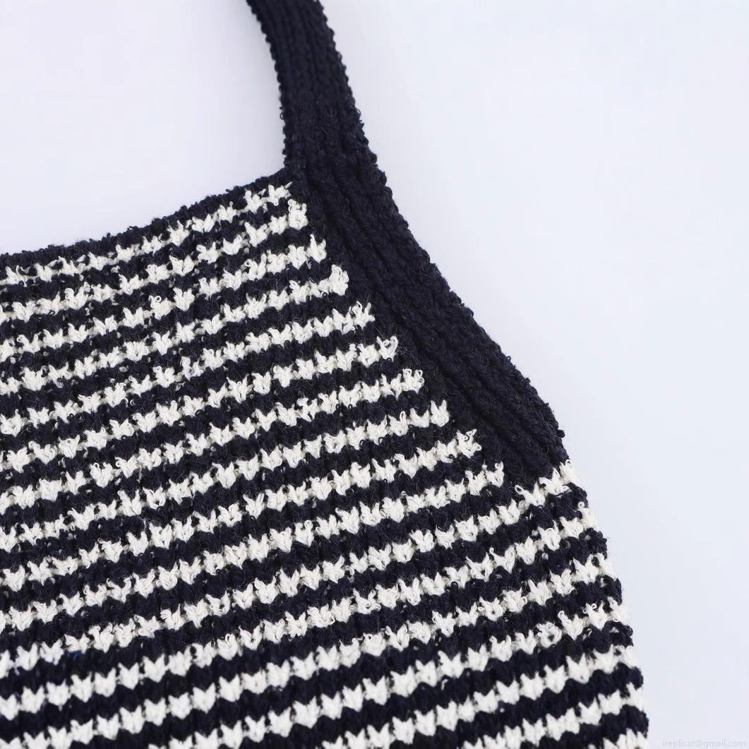 • Women's Striped Knit Camisole Top Spaghetti Strap Ruffle Hem Polyester Nylon Sleeveless Tank Top For Summer Streetwear Vacation