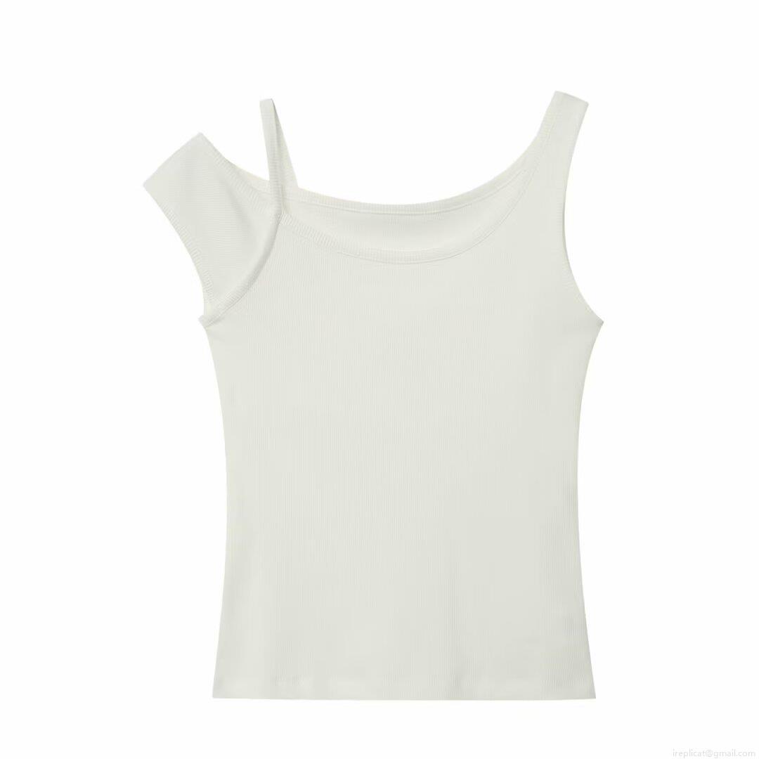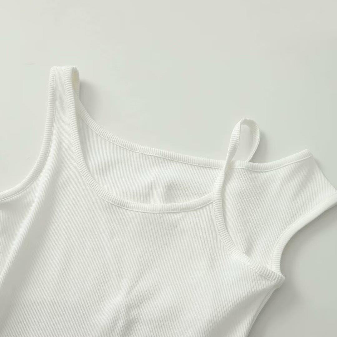 • Women's Summer Asymmetric Neck Ribbed Knit Tank Top Solid Color Irregular Design Sleeveless Vest Streetwear Casual Top