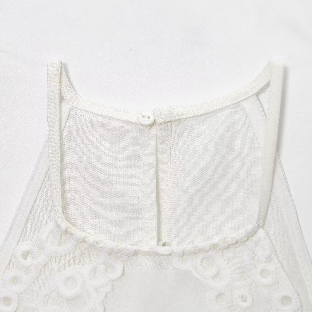 • Women's Summer Halter Lace Crochet Tank Top White Patchwork Backless Sleeveless Cotton Linen Blend Sexy Streetwear Casual Vest Shirt