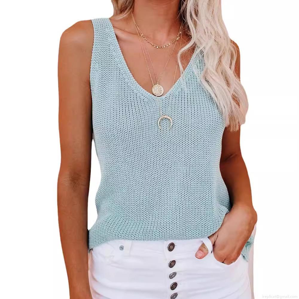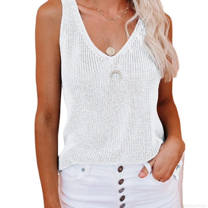• Women's Summer Knitted V-Neck Tank Top Ice Silk Sleeveless Crochet Slim Fit Vest For Daily Beach Casual Soft Breathable Cami