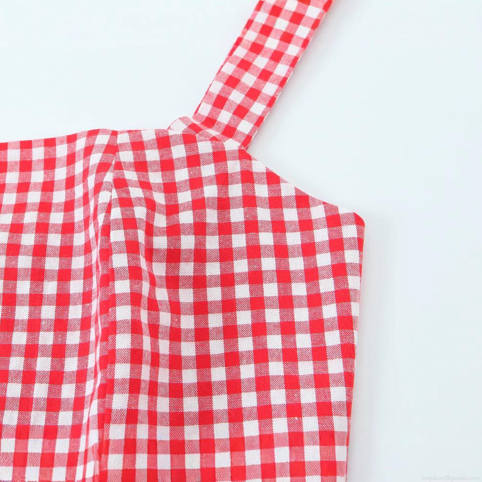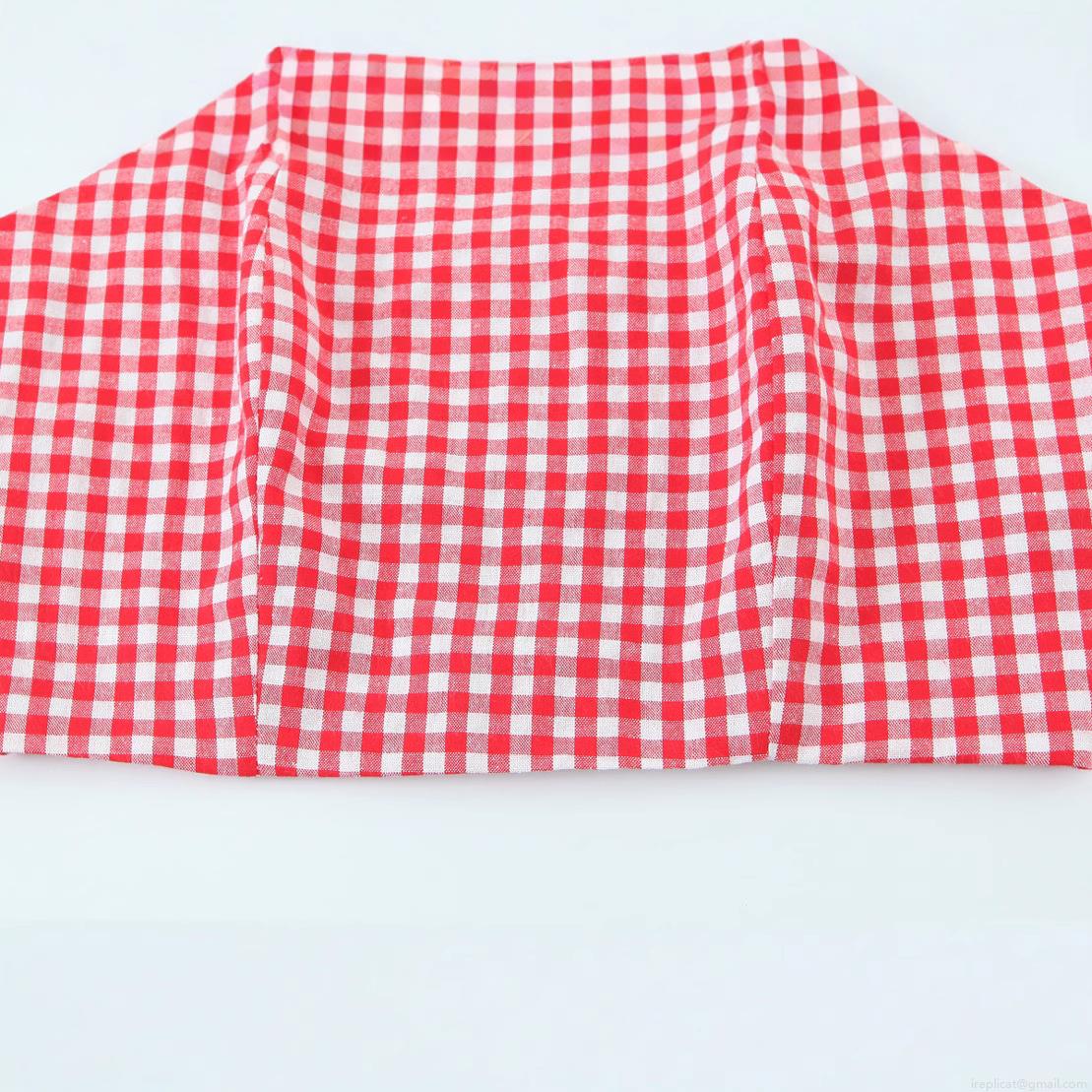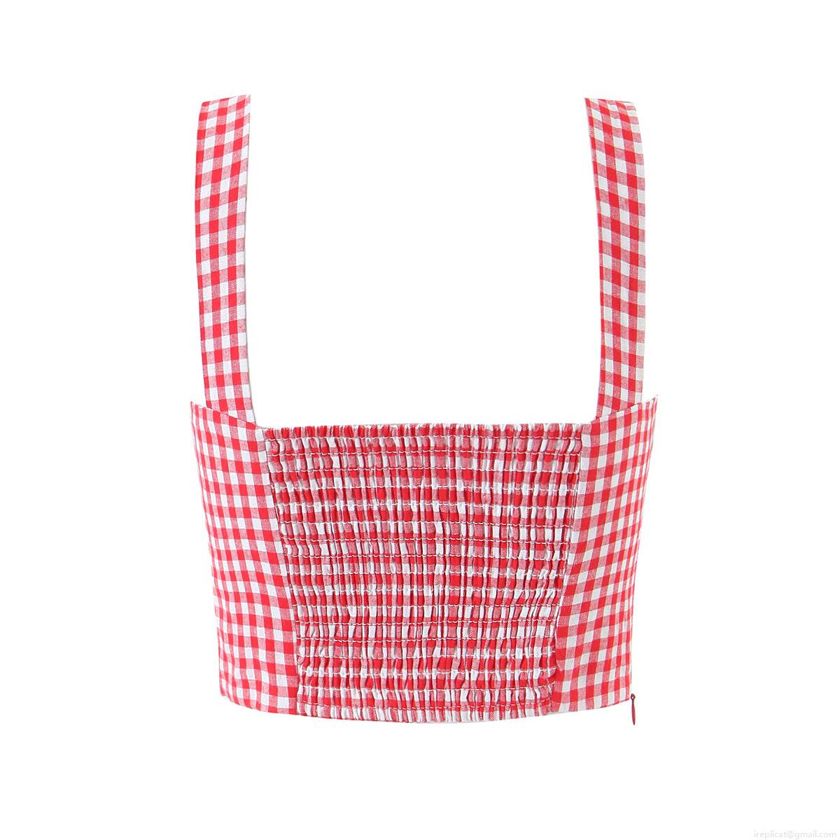 • Women's Summer Red White Gingham Square Neck Crop Top 100% Cotton Backless Smocked Strappy Camisole Side Zipper Casual Streetwear Sexy Tank Top