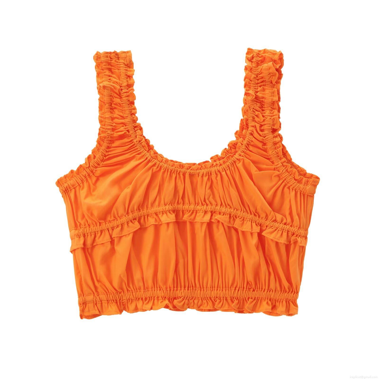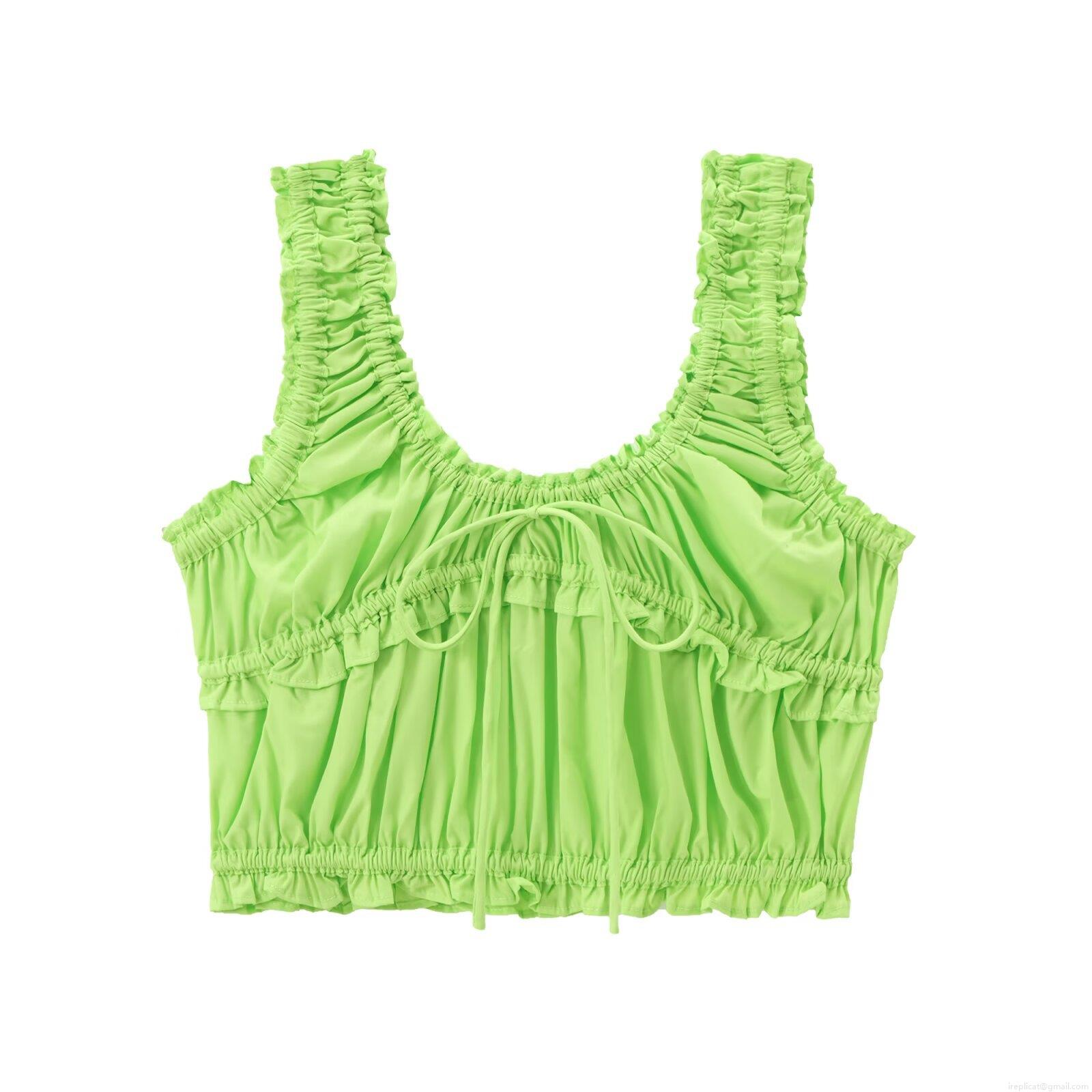 • Women's Summer Ruffle Smocked Camisole Top Tie-Front Bow Crop Tank Top Sleeveless Shirred Short Streetwear Casual Solid Color Vest