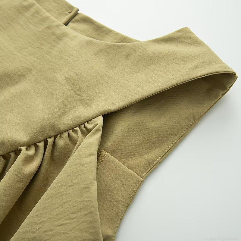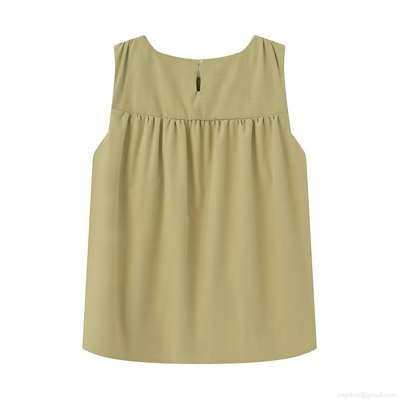 Solid Color, Pleats, V-shaped Splicing, Sleeveless Design