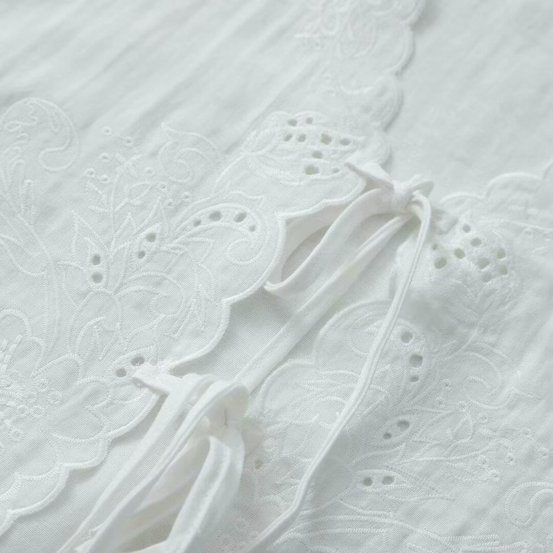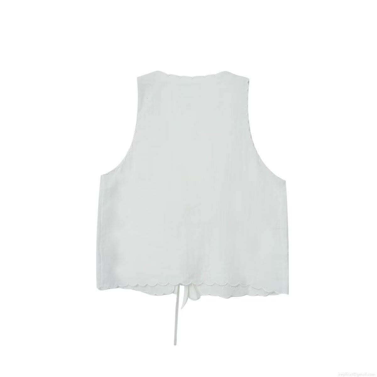 • Women's Summer V Neck Sleeveless Embroidered Tie Front Vest Top Boho Hollow Out Scalloped Edge Knit Waistcoat White Polyester Blend Streetwear