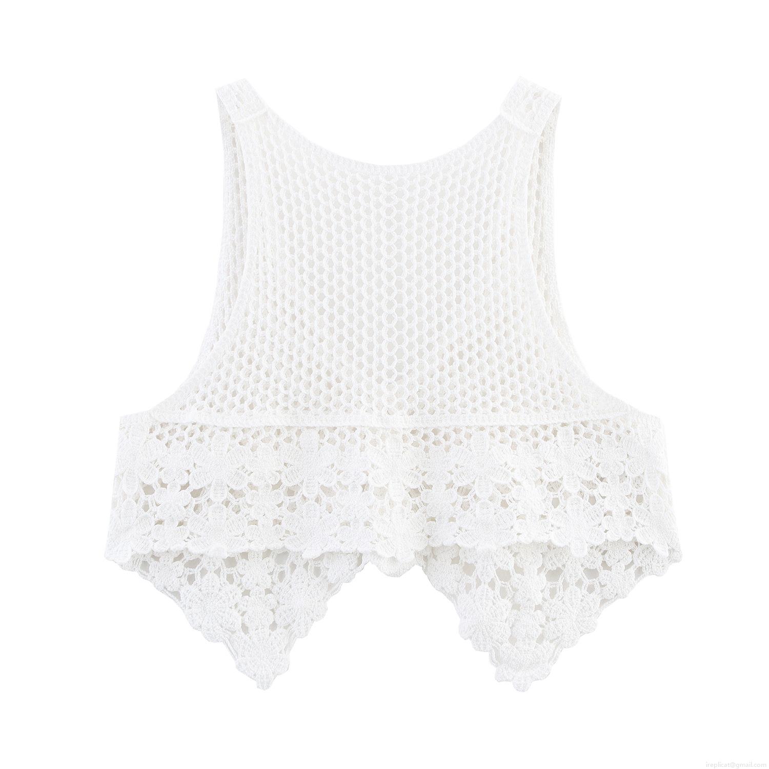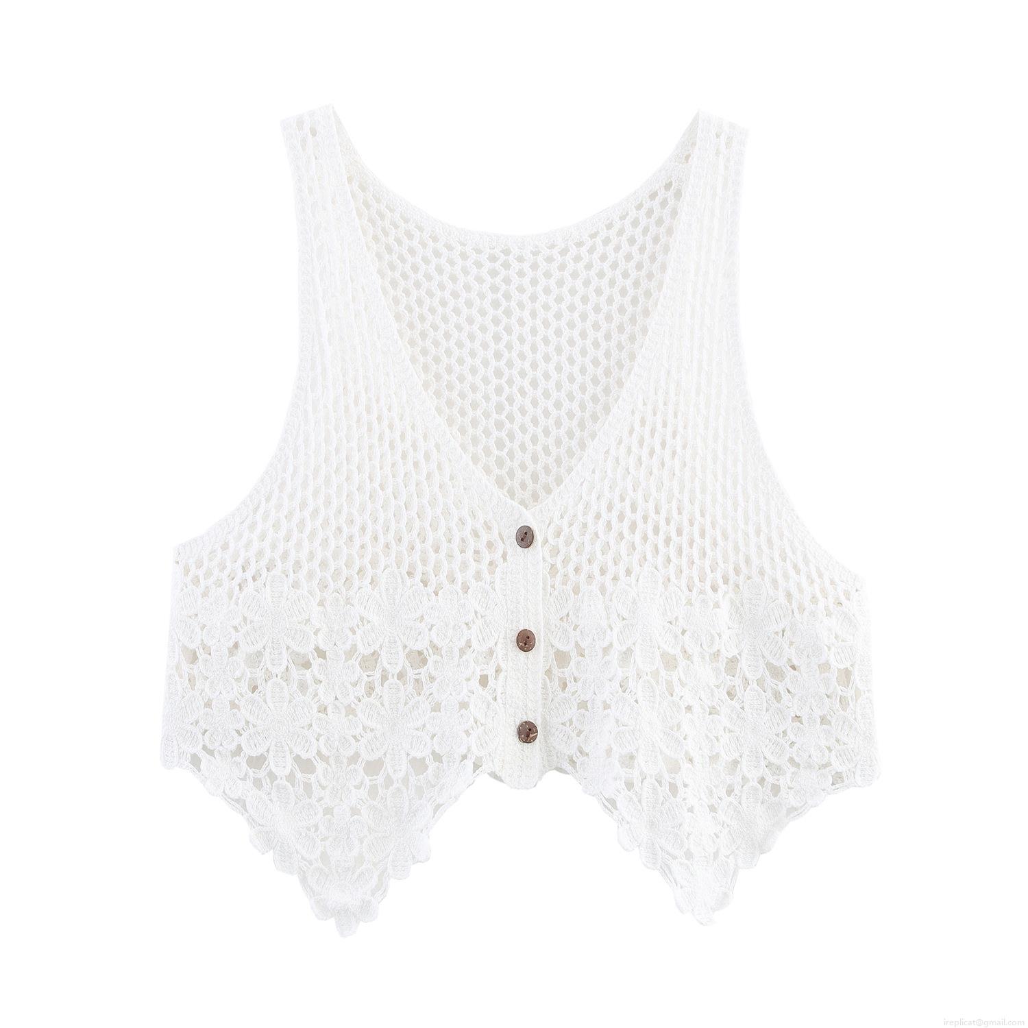 • Women's Sweet Crochet Knit V Neck Vest Cardigan Embroidered Floral Hollow Out Short Waistcoat Top White Sleeveless Button Down Outerwear For Summer Spring
