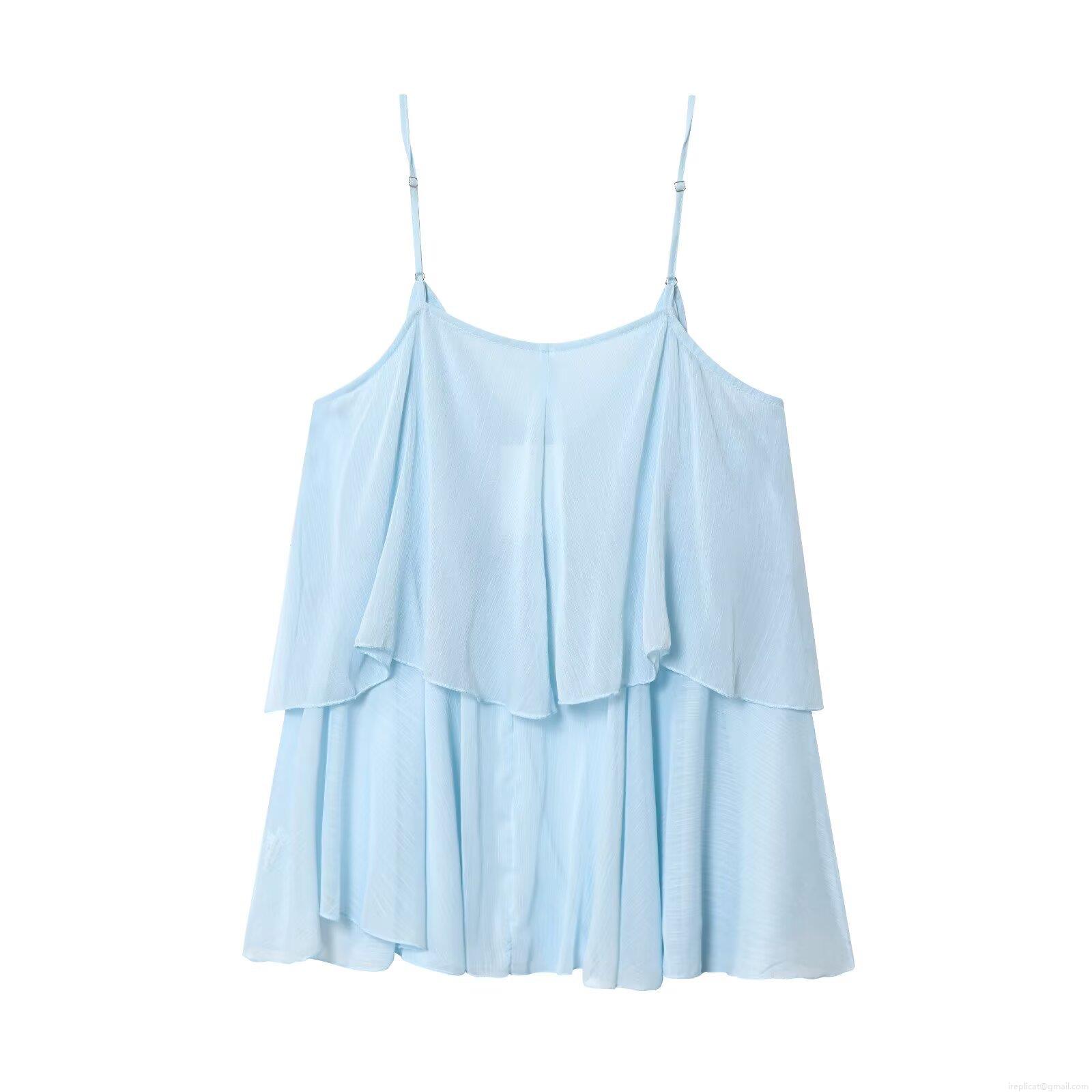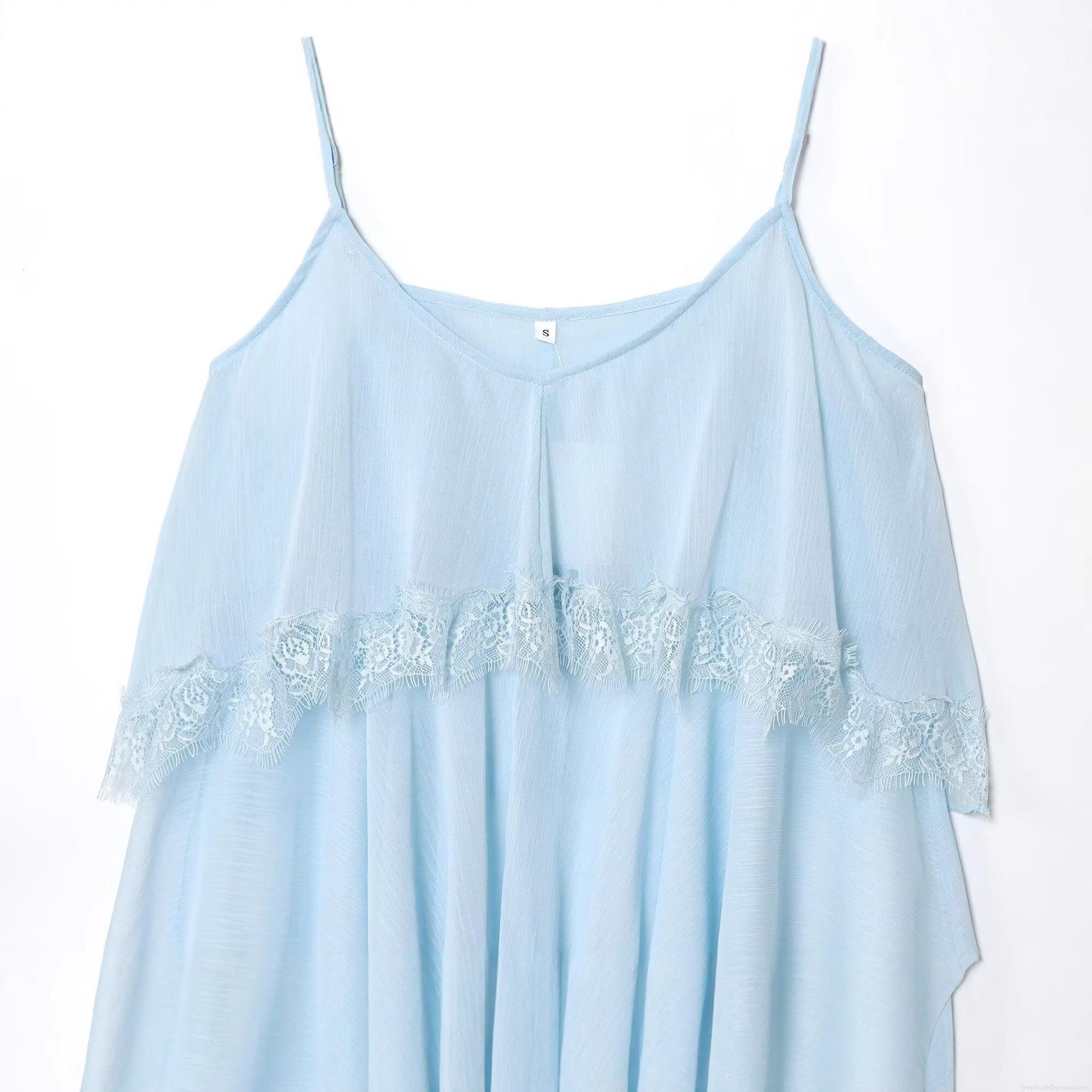 • Women's Sweet Light Blue Lace Patchwork Camisole Top Ruffle Layered Chiffon Cami Tank Top For Summer Dating Party Club Wear Elegant Aesthetic Sleeveless Blouse