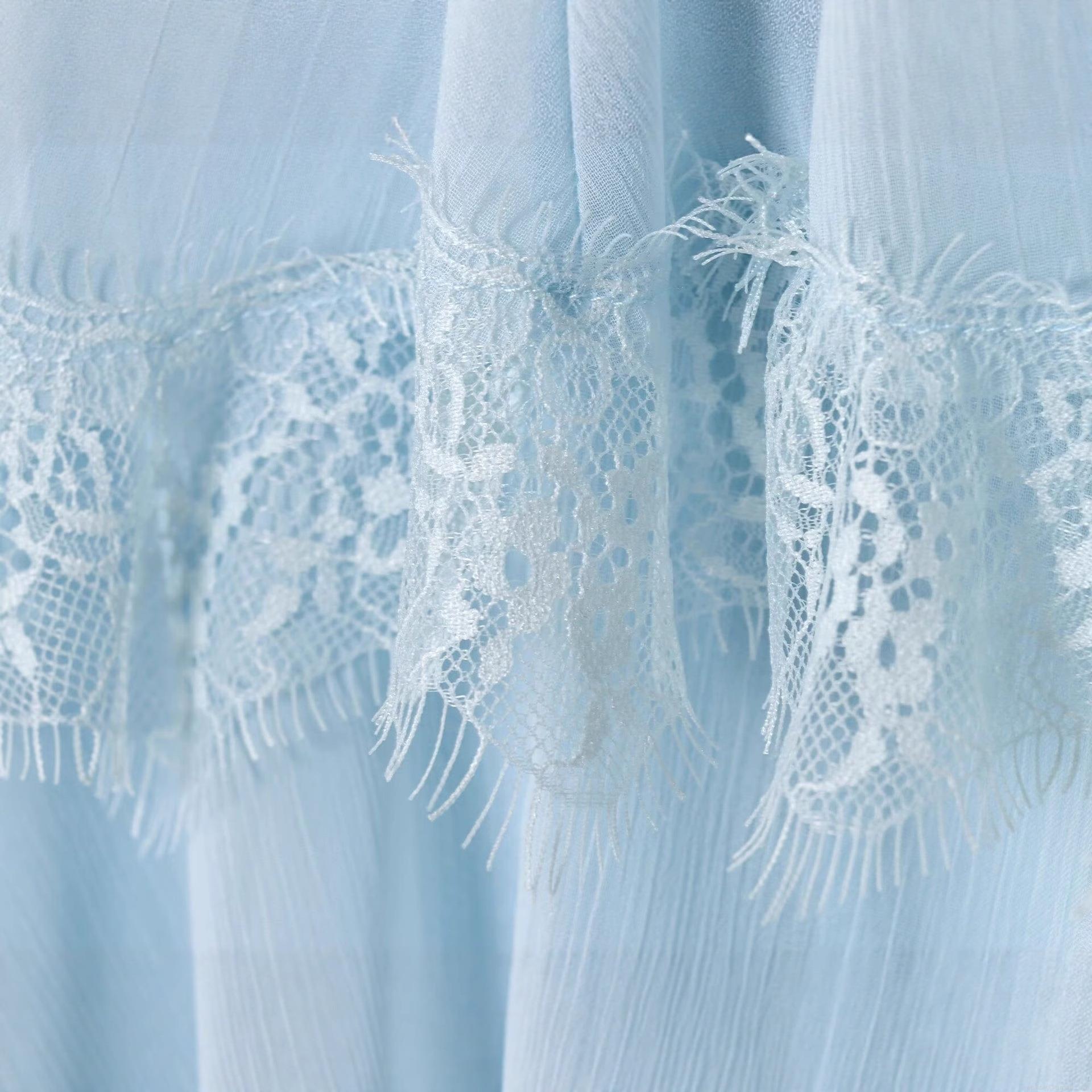Women's Sweet Light Blue Lace Patchwork Camisole Top Ruffle Layered Chiffon Cami Tank Top For Summer Dating Party Club Wear Elegant Aesthetic Sleeveless Blouse