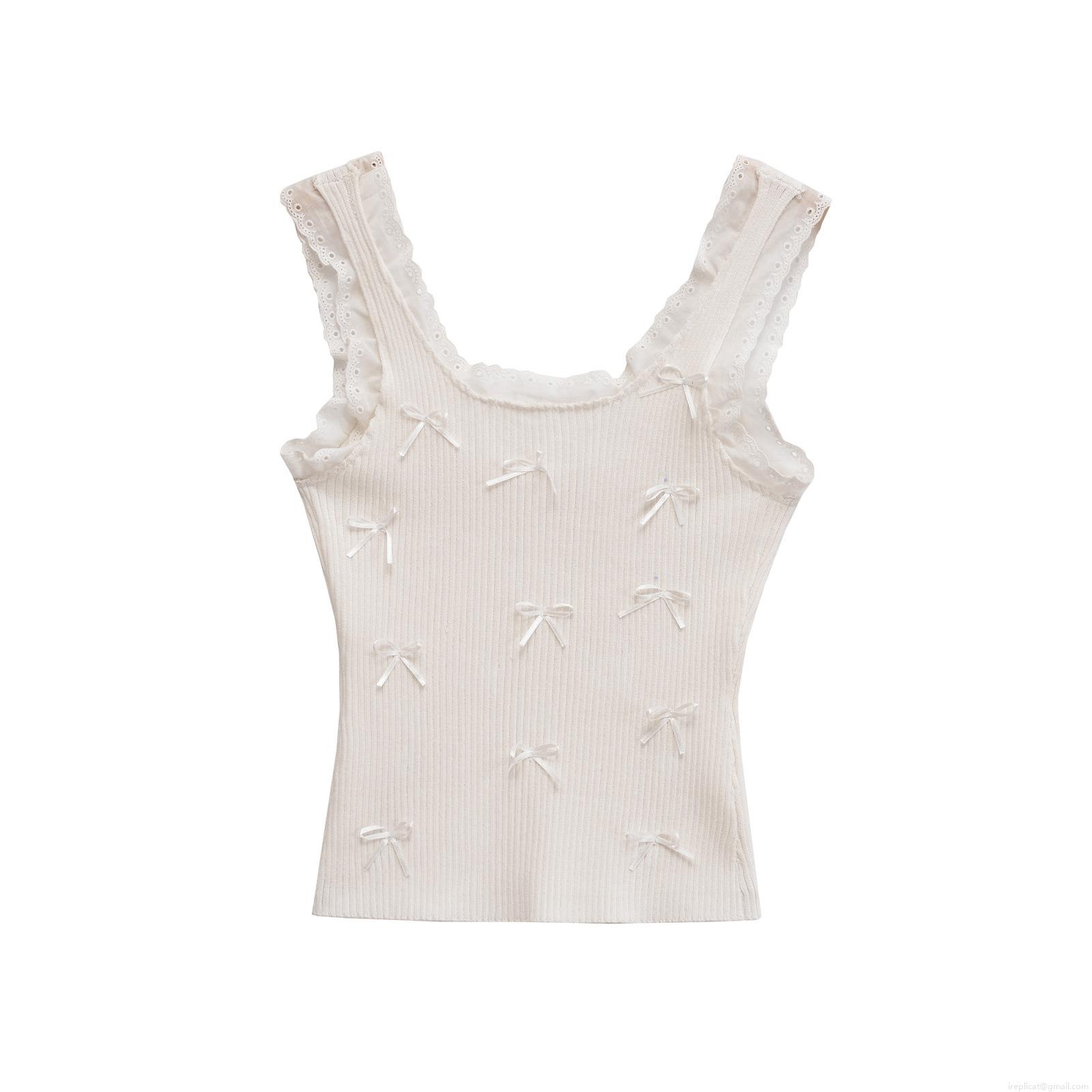 • Women's Sweet Ribbed Knit Camisole With Lace Trim And Ribbon Bows Slim Fit Sleeveless Tank Top For Summer Daily Casual Streetwear Women Tops