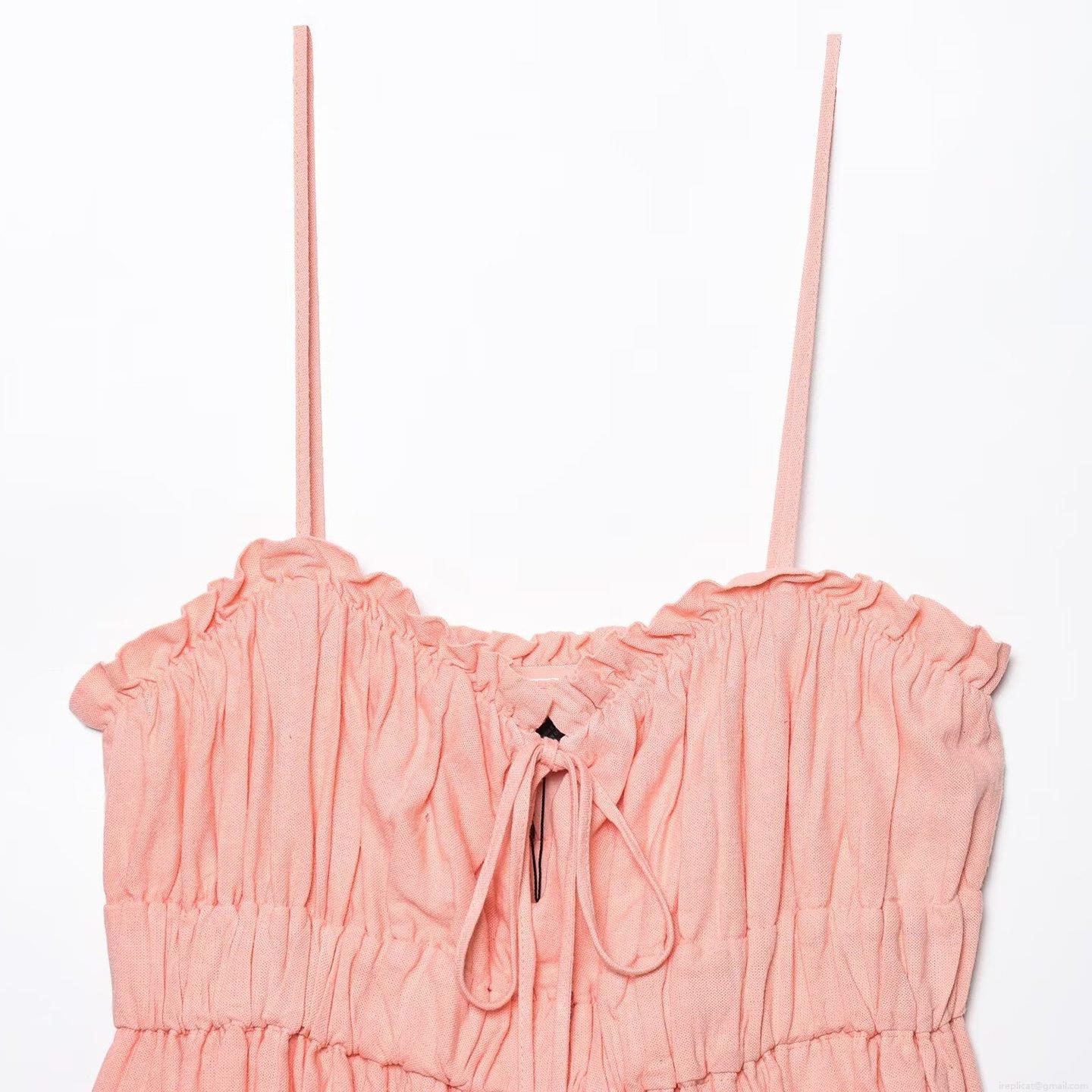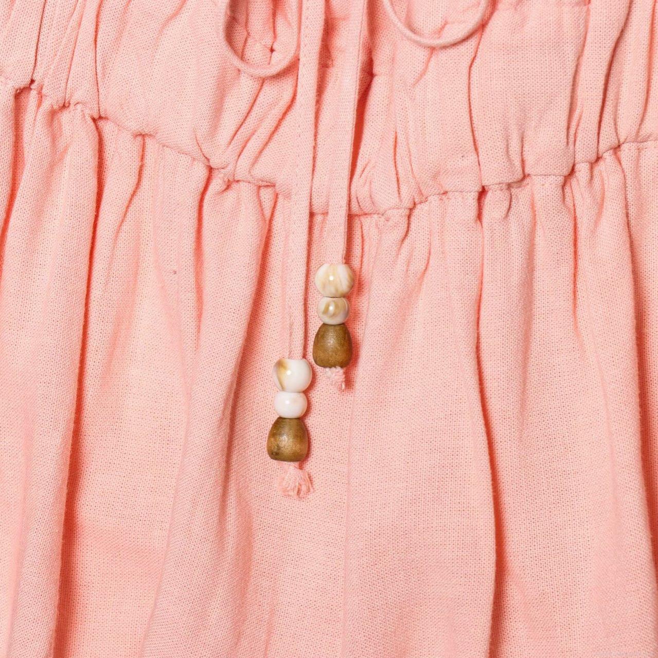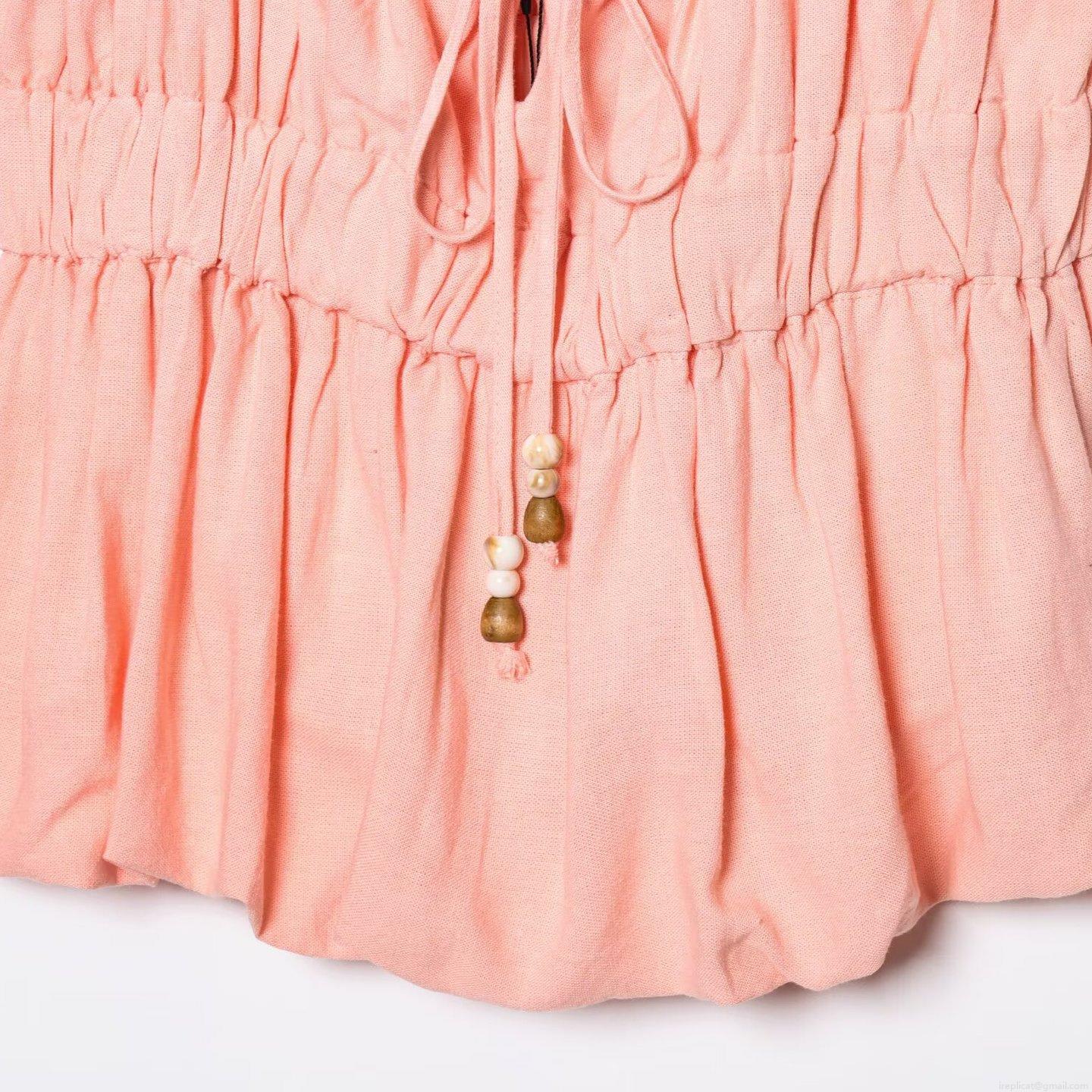 • Women's Sweet Ruffle Camisole Cotton Linen Blend Smocked Waist Tank Top With Wooden Beads Sleeveless Summer Boho Top For Women Pink White