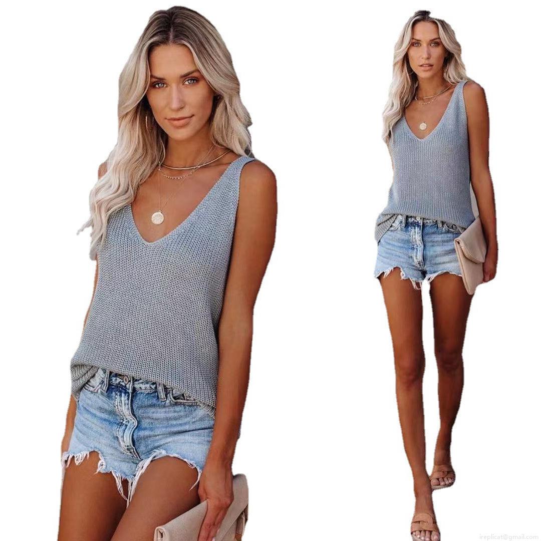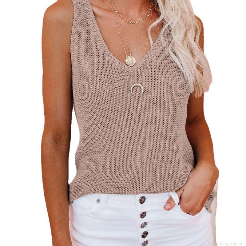 V-neck, Sleeveless, Knitted Texture, Shoulder Straps