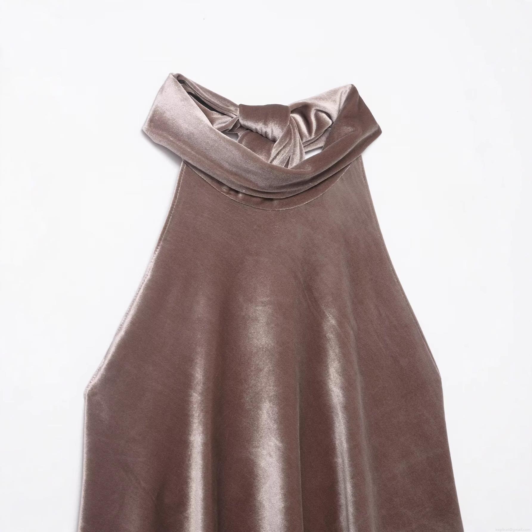 • Women's Velvet Halter Neck Asymmetric Camisole Top Elegant Rose Gold Mauve Sleeveless Backless Top for Party Club Night Out Slim Fit Clothing