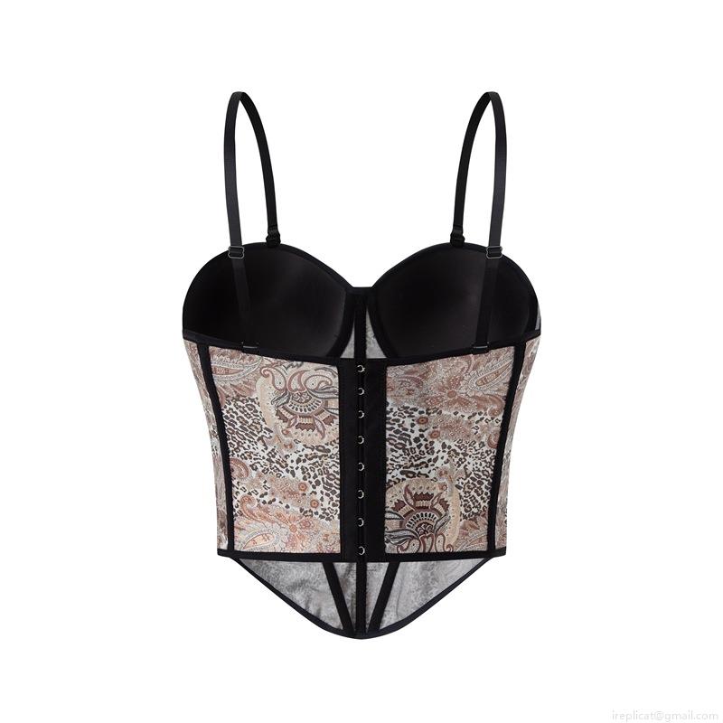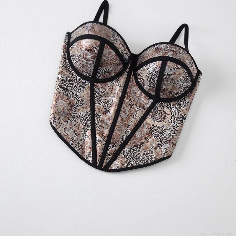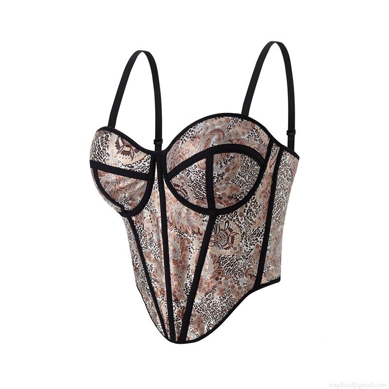 • Women's Vintage Paisley Leopard Print Corset Top Sexy Fishbone Bustier Tank Top Polyester Spandex Blend Sleeveless Hook-And-Eye Crop Top For Party Clubwear